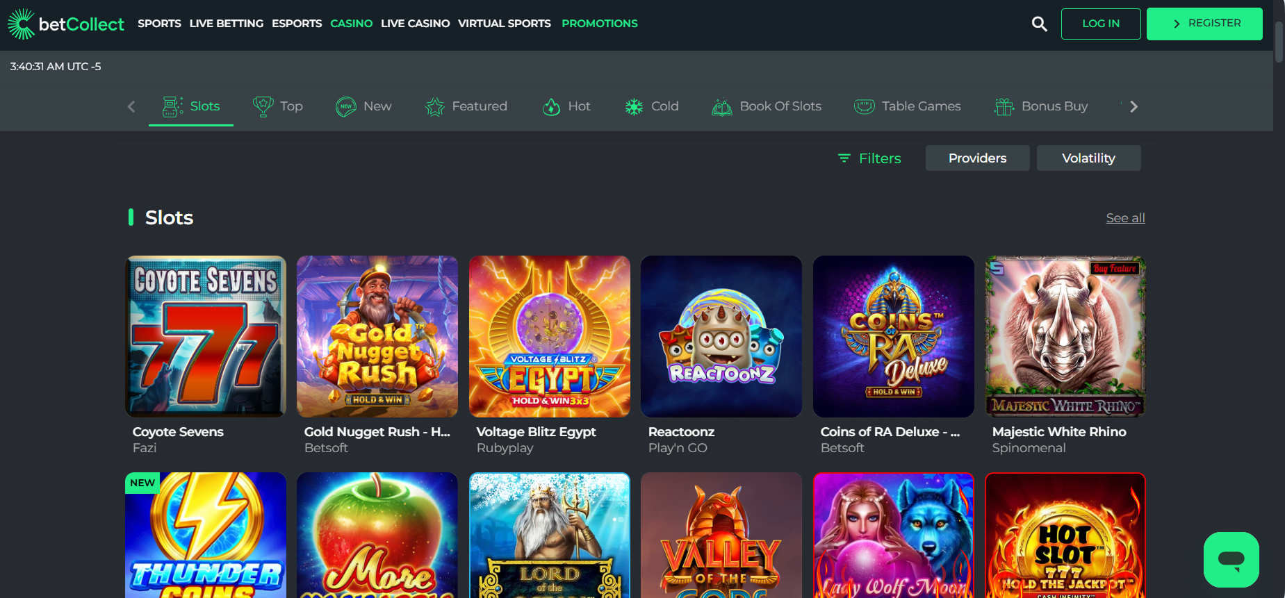 BetCollect Casino offers a wide range of games, including slots, table games, live dealer games, and exclusive crypto-focused Originals. Players can also enjoy a fully integrated sportsbook covering popular sports and esports.