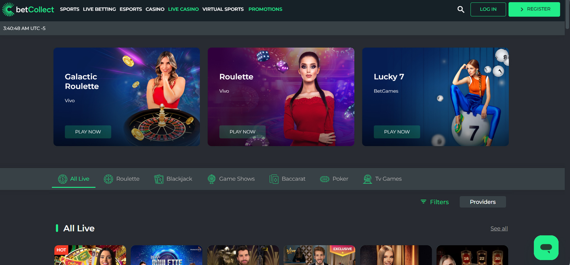 Yes, BetCollect provides a full-featured live casino section, powered by premier developers such as Evolution Gaming. Players can enjoy real-time versions of blackjack, roulette, baccarat, and game show-style titles, all streamed in HD with professional dealers for an authentic casino atmosphere.