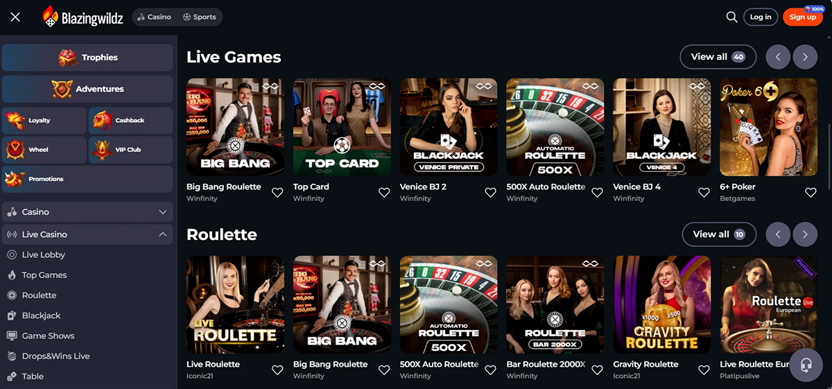 Slots take center stage at BlazingWildz Casino, offering an extensive library of games that combine stunning visuals with dynamic gameplay. Each slot features varying volatility levels and RTP rates, giving players the flexibility to choose titles that suit their preferred style and risk strategy. Innovative mechanics such as Megaways, cascading reels, and bonus-buy options add extra layers of excitement and the chance for substantial wins. Despite the wide array of themes and designs, the platform remains user-friendly and well-organized, making it easy to browse and select games. Filters by provider, theme, or volatility help players quickly find slots that match their individual preferences and playstyle.