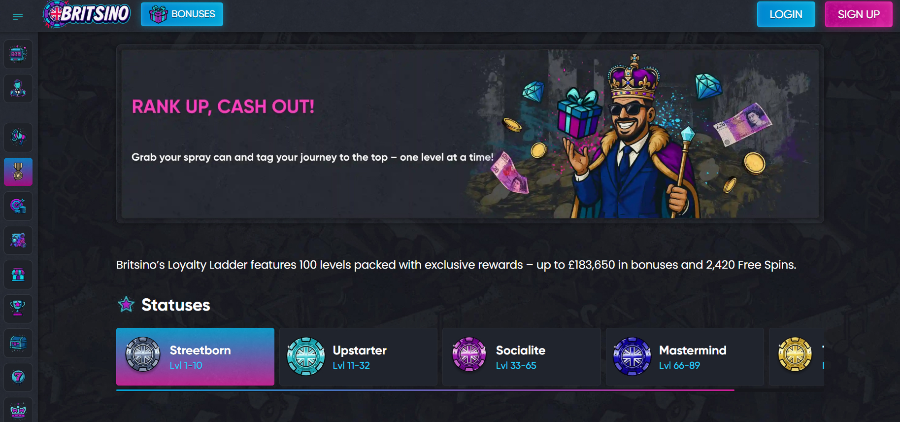 Beyond its game variety, Britsino offers a generous promotional structure. New players can claim a four-tier welcome package worth up to £2,200 plus 800 free spins. The platform also features a gamified lootbox system with rewards tied to deposit tiers, weekly reload bonuses, a lottery, tournaments, and a five-level VIP program — all designed to reward loyalty and engagement.