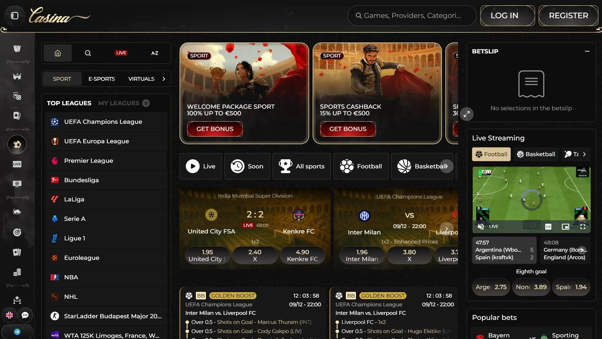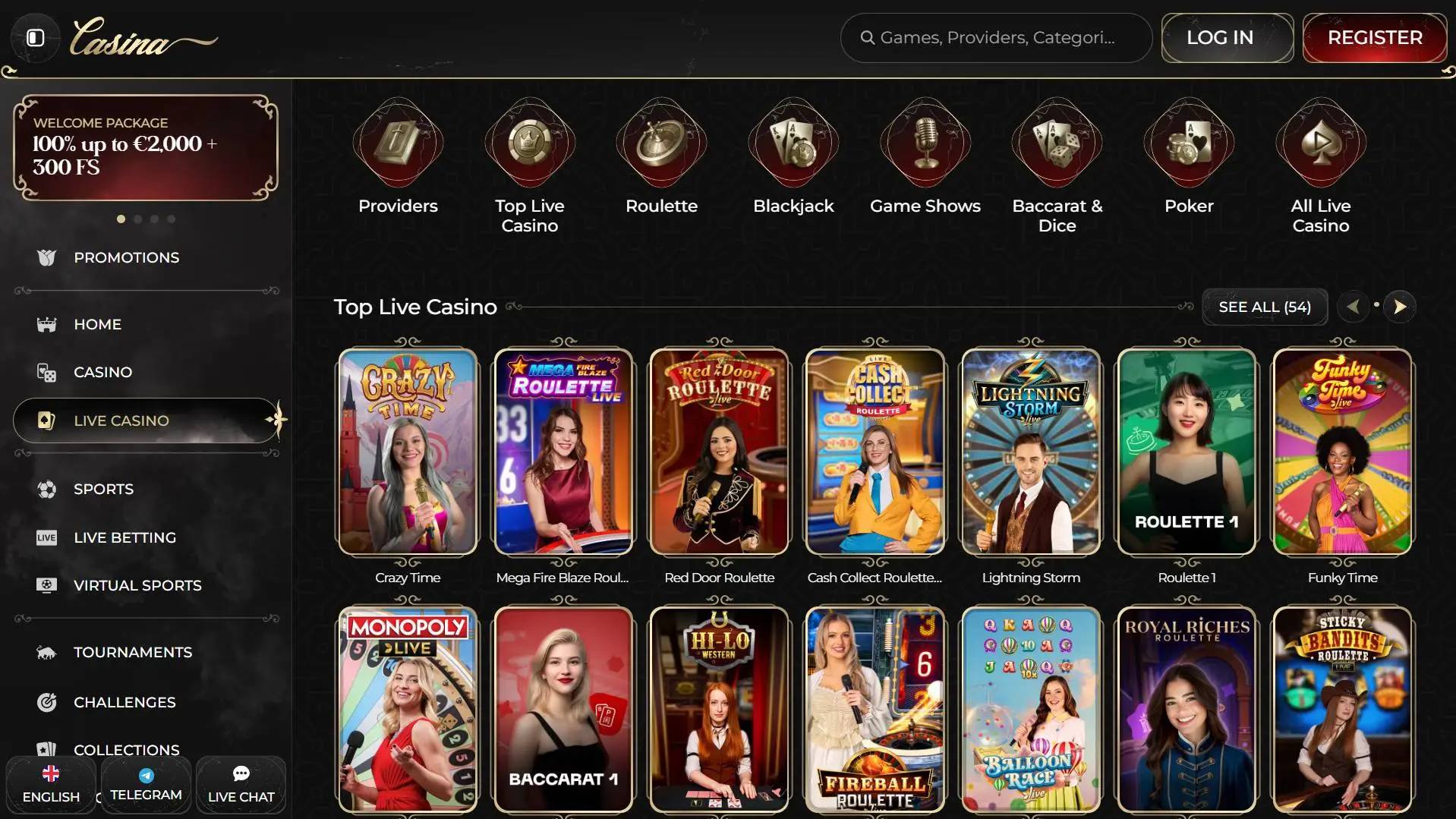 Live casino Live casino Real-time casino games streamed from professional studios or land-based venues. Includes table games with live dealers, offering an authentic and interactive gaming experience.
