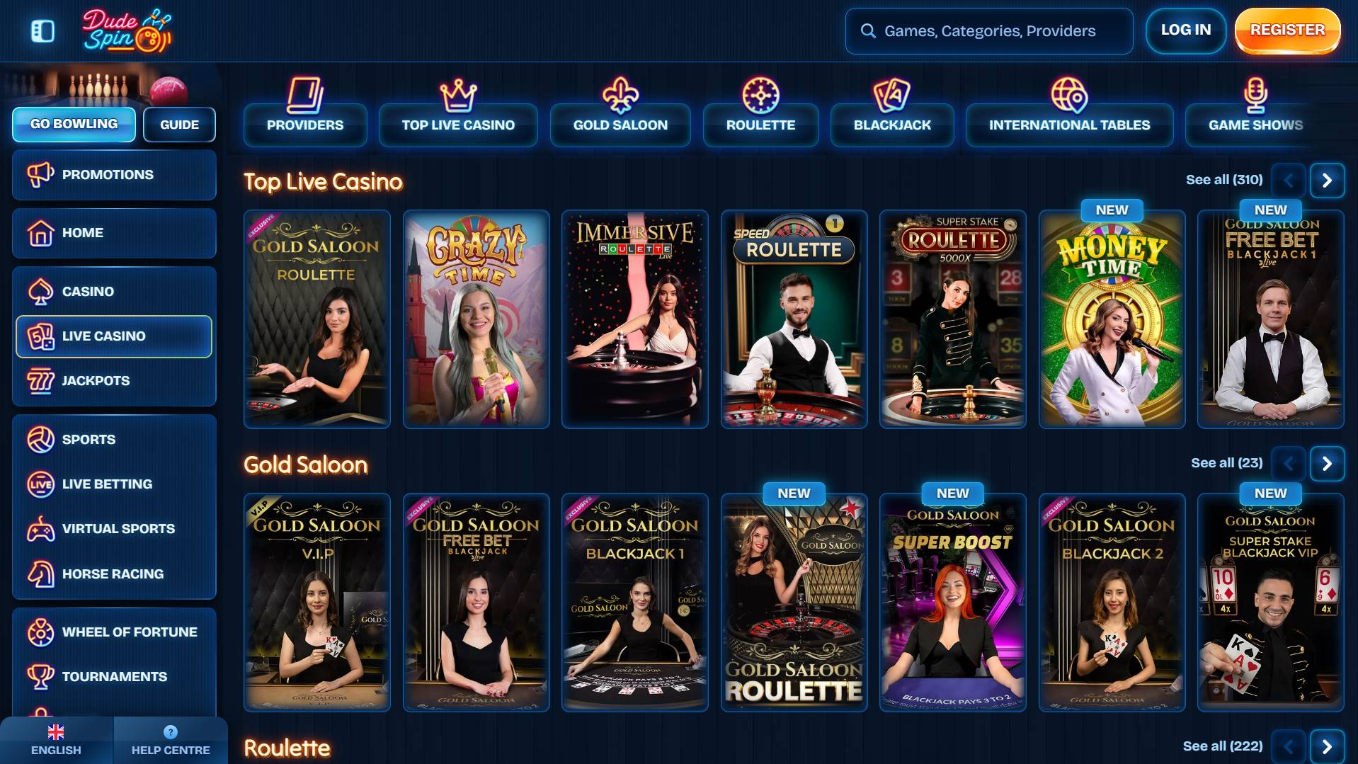 Live casino Live casino Real-time casino games streamed from professional studios or land-based venues. Includes table games with live dealers, offering an authentic and interactive gaming experience.