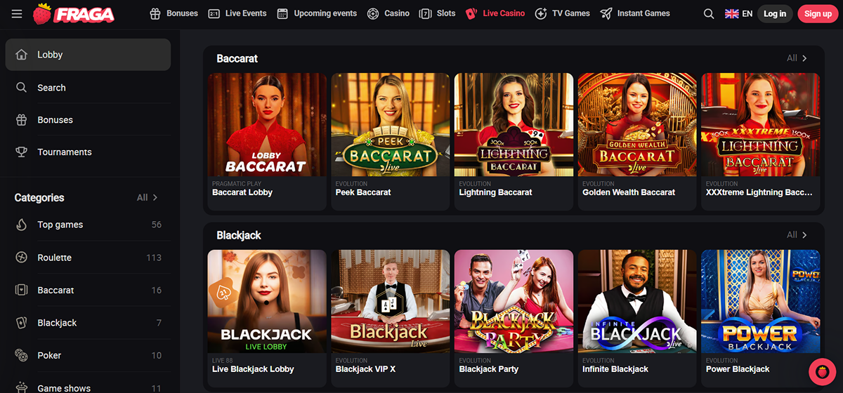 Fragabet Casino offers a broad and varied game collection designed to appeal to different player preferences. The casino features a wide range of slot games including classic slots video slots and modern themed titles with diverse mechanics and bonus features. Table game options typically include popular choices such as roulette blackjack and baccarat presented in multiple variations. For players seeking a more immersive experience the live casino section provides real time games hosted by professional dealers streamed directly from studios. In addition the platform may include instant win and TV style games offering fast paced gameplay.