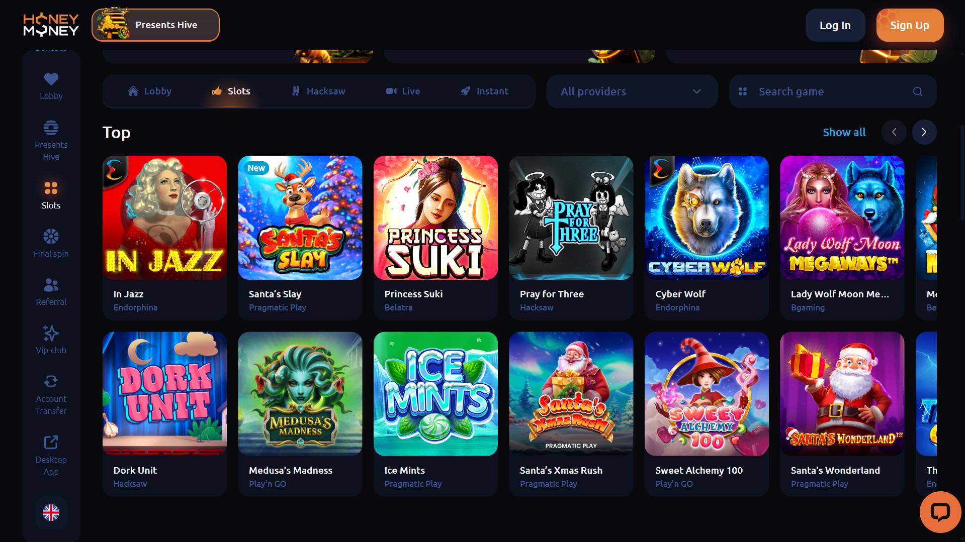 The provider lineup includes Evolution and Pragmatic Play Live for the live branch, with Play n GO, Quickspin, iSoftBet, Yggdrasil, Amatic, ELK, Push Gaming and others supporting slot diversity. This range allows for varied RTP models and bonus structures that remain consistent with the expectations of data driven users. The complete list of HoneyMoney Casino’s partners appears directly below this paragraph.