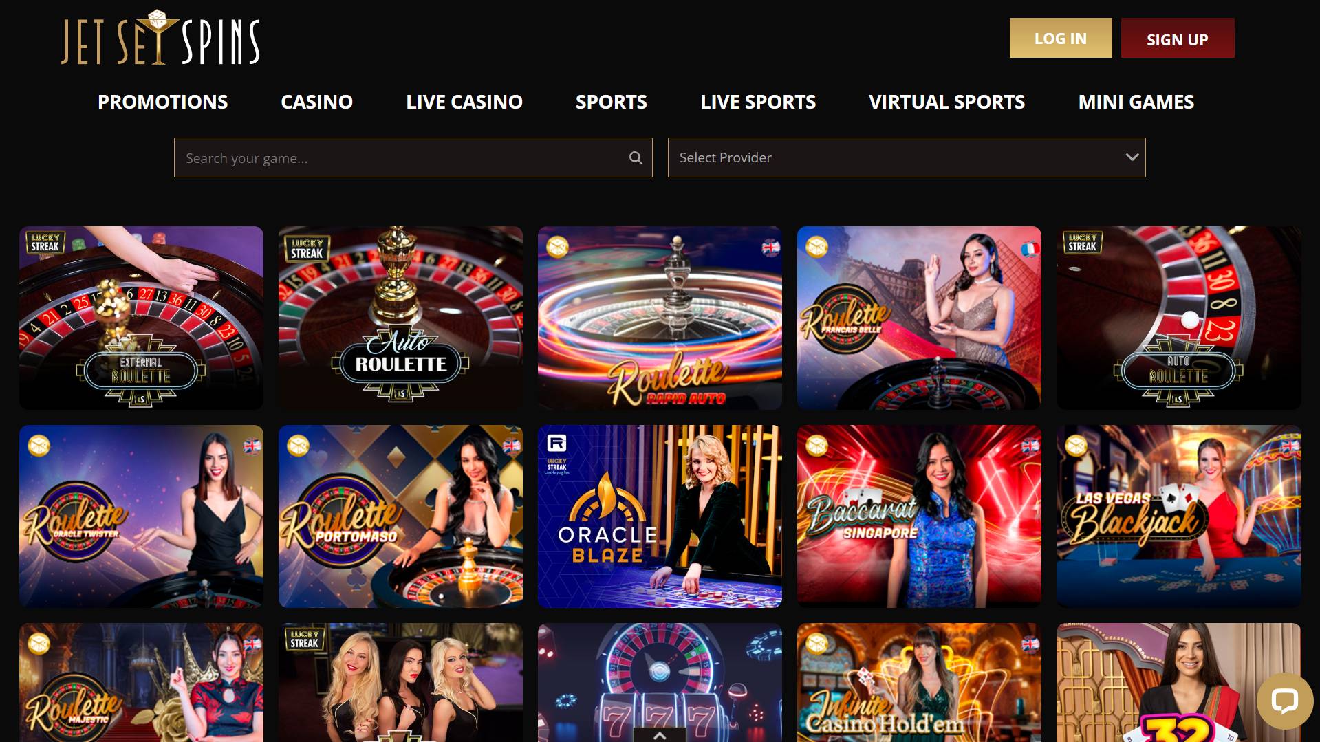 Under the hood, JetSetSpins appears optimized for content volume and fast loading over design flair. The lobby features roughly 3,900 games spread through modern slots, jackpot titles, card tables and a live area. Sorting tools, RTP visibility and search filtering behave responsively on both desktop and mobile. JetSetSpins focuses on instant browser play instead of complicated installation. Game performance holds steady with minimal stutter, provided stable internet is present. Live tables exceed the hundred mark, offering roulette, blackjack, poker rooms and novelty streams. Big libraries serve high variety players best, and this casino pushes that angle strongly.
