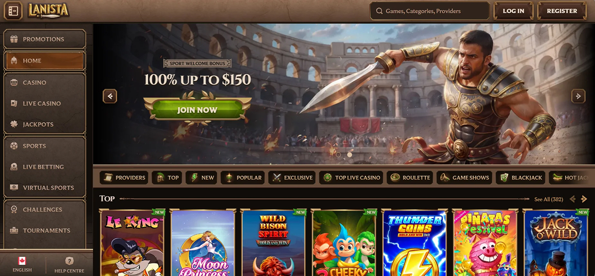 Lanista Casino, launched in November 2025 under the Partners Casa affiliate umbrella, stands out as a modern platform built with strong attention to design quality and smooth navigation. Its interface is crafted to feel clean, intuitive, and stylish, giving players effortless access to slots, table games, live dealers, and a full sportsbook. Backed by an Anjouan license, Lanista provides a secure and reliable environment supported by advanced technology and fast-loading pages. The casino focuses on delivering polished visuals, stable performance, and a layout that appeals to both beginners and seasoned bettors.