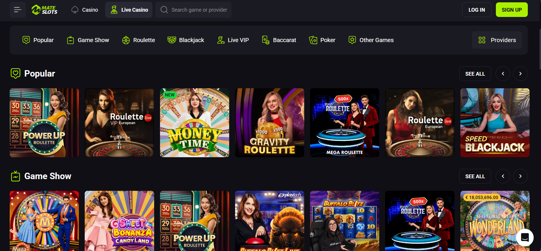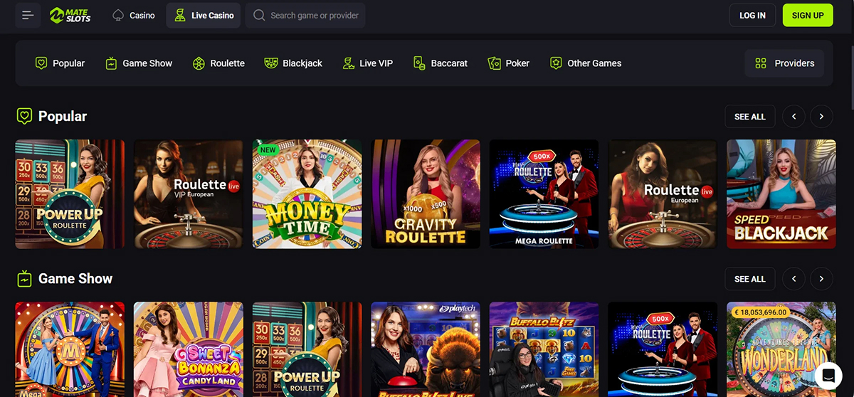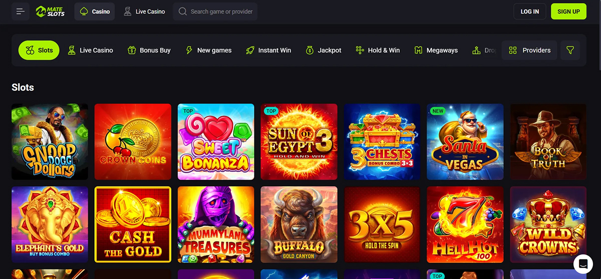 At MateSlots Casino, slots take the spotlight with a vast selection of titles that combine captivating gameplay with high-quality design. Each game comes with distinct volatility levels and RTP rates, giving players the flexibility to pick options that match their preferred style and strategy. Features like Megaways, cascading reels, and bonus-buy options add extra excitement and enhance the potential for big wins. Despite the wide variety of themes and game mechanics, the interface remains intuitive and easy to navigate. Players can also use filters by provider, theme, or volatility to quickly find games that align with their interests and risk preferences.