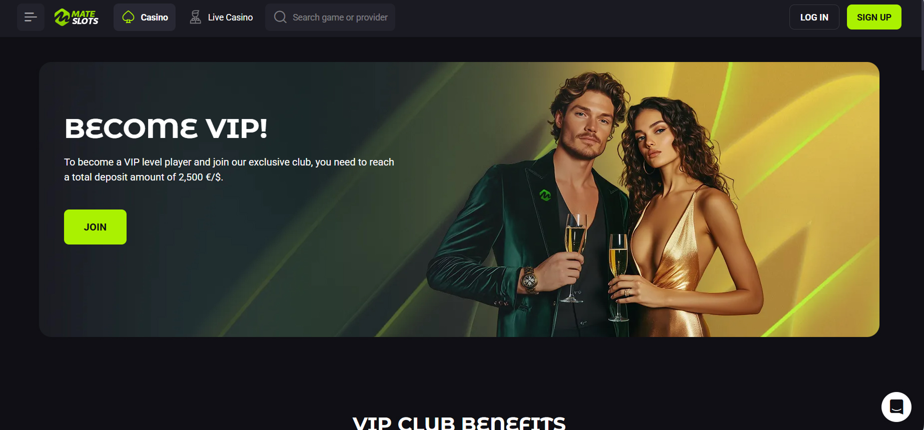 MateSlots Casino is a lively online casino designed for players who enjoy fun, social gaming and a wide variety of slot titles. The platform hosts hundreds of games from leading software providers, including video slots, progressive jackpots, and classic reels, offering something for every type of slot enthusiast. Beyond slots, players can explore table games like blackjack, roulette, and baccarat, all delivered with smooth graphics and engaging gameplay. The site is fully optimized for desktop and mobile devices, making it easy to play anytime, anywhere.