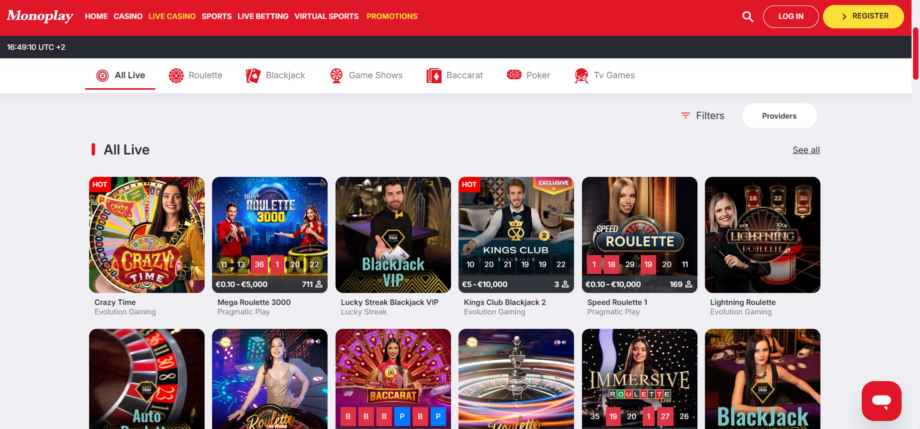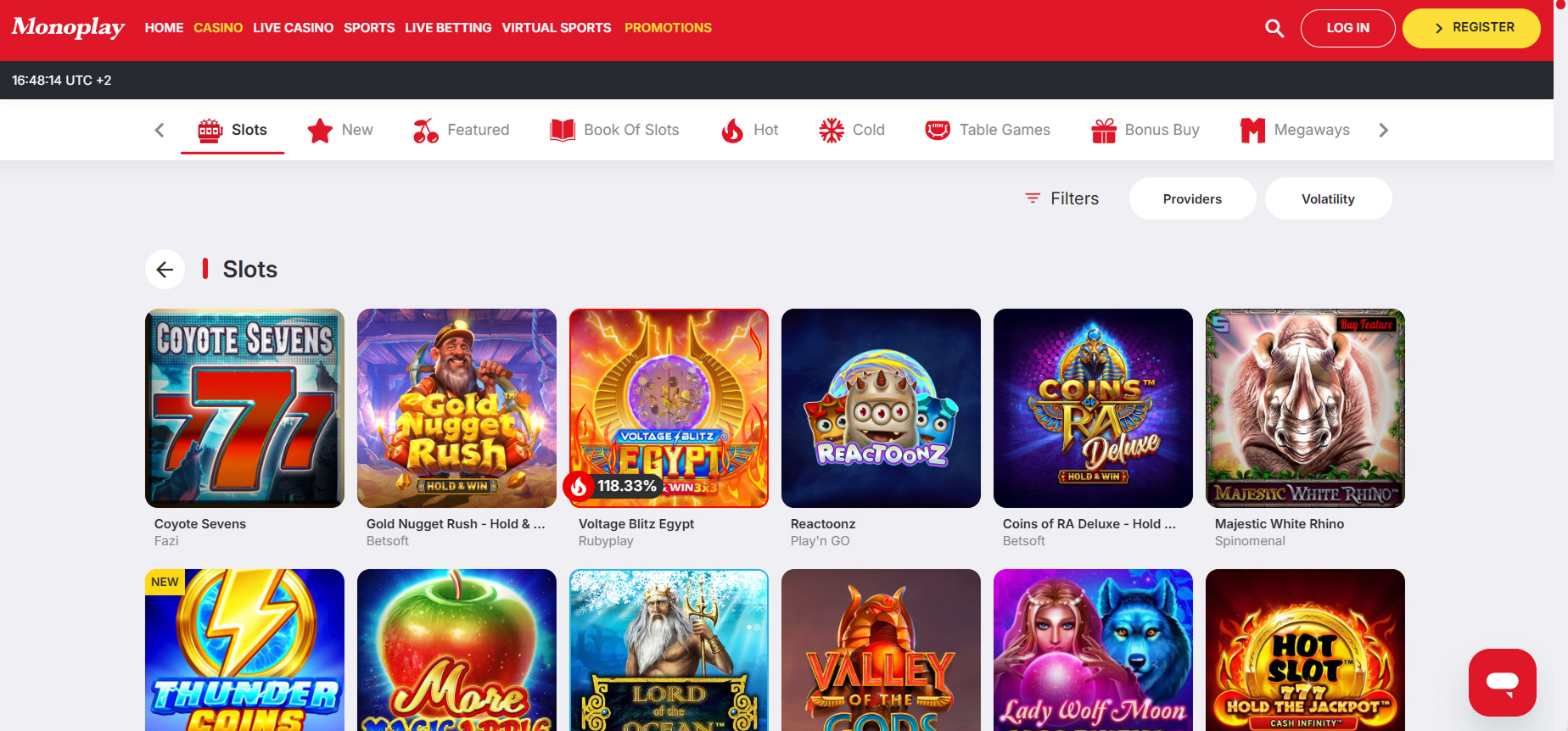 Slots dominate the gaming section at MonoPlay Casino, presenting an extensive portfolio of titles that blend high-quality visuals with captivating gameplay. Each slot comes with distinct volatility ranges and RTP rates, giving players the freedom to select games that align with their personal strategies and comfort levels. Advanced mechanics such as Megaways, cascading reels, and bonus-buy functions add extra intensity and boost the potential for substantial payouts. Despite the vast diversity of themes and styles, the platform maintains an intuitive and neatly organized layout for effortless browsing. Players can fine-tune their selection by filtering games according to provider, theme, or volatility, ensuring they quickly find titles that suit their preferences and playing rhythm.