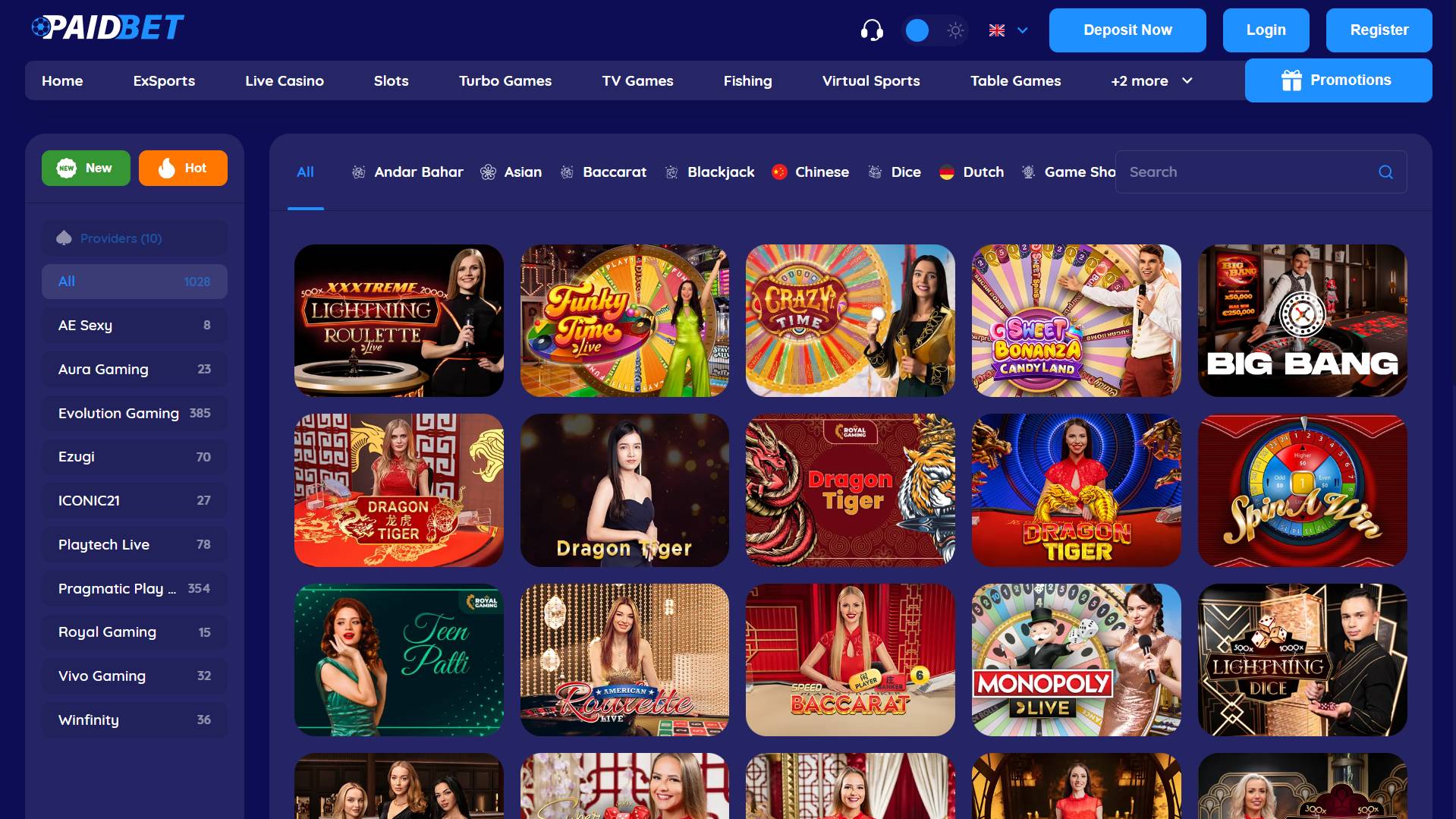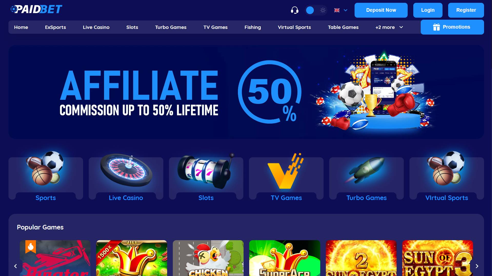 PaidBet enters the market as a 2024 platform run by Aninda Solutions Ltd under an AOFA Anjouan license. The site holds more than 7,430 slot titles, over 1,028 live and table games combined, plus sportsbook access and virtuals. The layout is easy to follow, with sections clearly marked for slots, live rooms, betting markets, promotions, registration and account handling. USD acts as the default currency and users also get crypto banking with BTC, ETH, USDT, USDC and others. Deposits start at 10 USD and withdrawals from 5 USD, capped at 1,000 USD per transaction when cashing out.