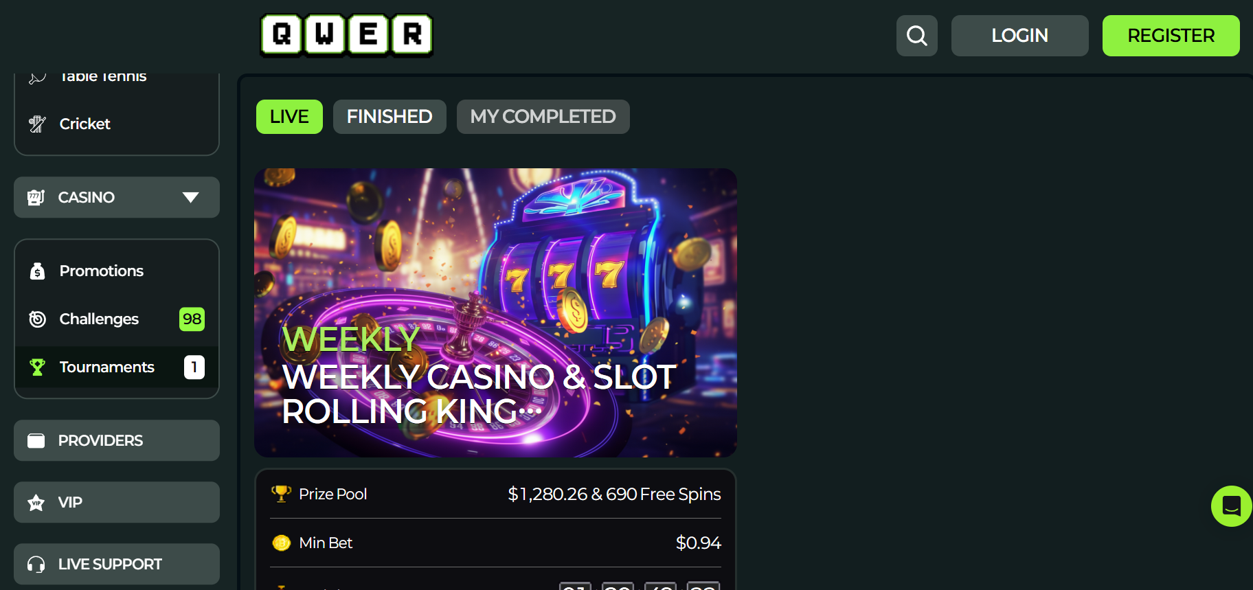 Qwer Casino is a vibrant hub for players seeking excitement and opportunity in the world of online gaming. With a sleek, intuitive interface, the platform makes it easy for both newcomers and seasoned gamers to explore a wide array of games. From classic table games like blackjack and roulette to cutting-edge slots with dynamic themes and immersive visuals, Qwer Casino offers something for every type of player. Advanced security measures ensure that transactions and personal data are fully protected, giving users confidence while they focus on the thrill of the game. Additionally, the platform’s robust mobile functionality allows players to dive into their favorite games anytime, anywhere, without compromising quality or speed.