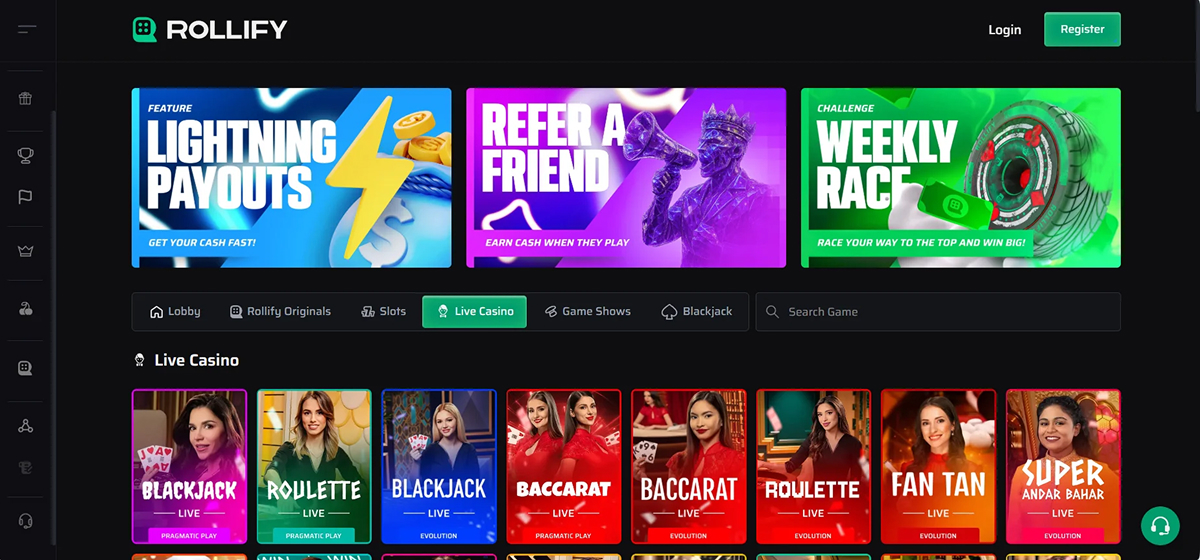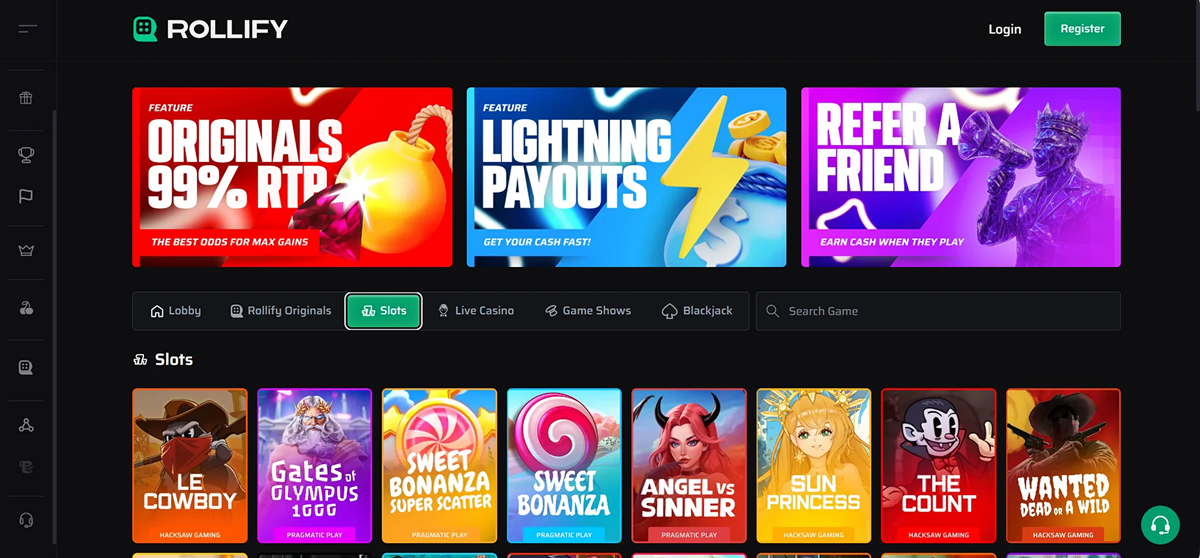 Rollify Casino is a streamlined, crypto‑centric platform that stands out for its large and varied game library, user‑friendly design, and fast transaction options. It’s licensed in Anjouan under Rollify Limitada, supporting a broad selection of games from over 30 providers, including big names like Pragmatic Play, Nolimit City, and Evolution Gaming. Their catalog reportedly includes more than 4,700 titles, with a particularly strong focus on slots, live tables, and provably fair in-house originals like Crash, Dice, and Limbo.