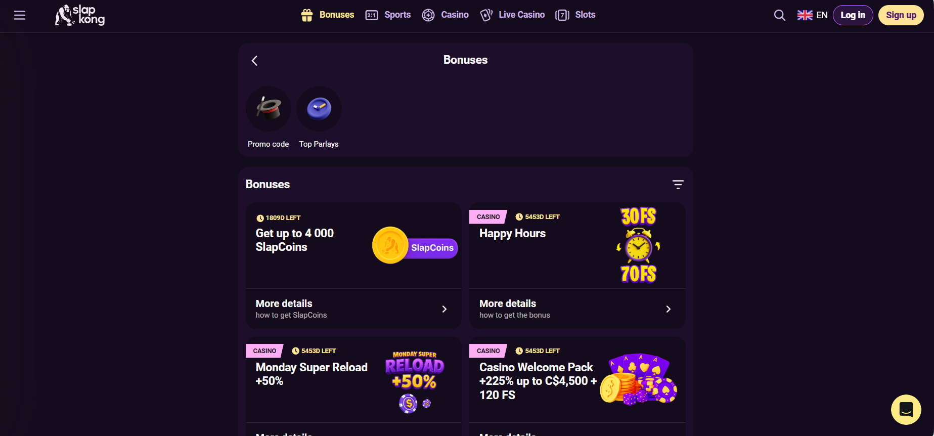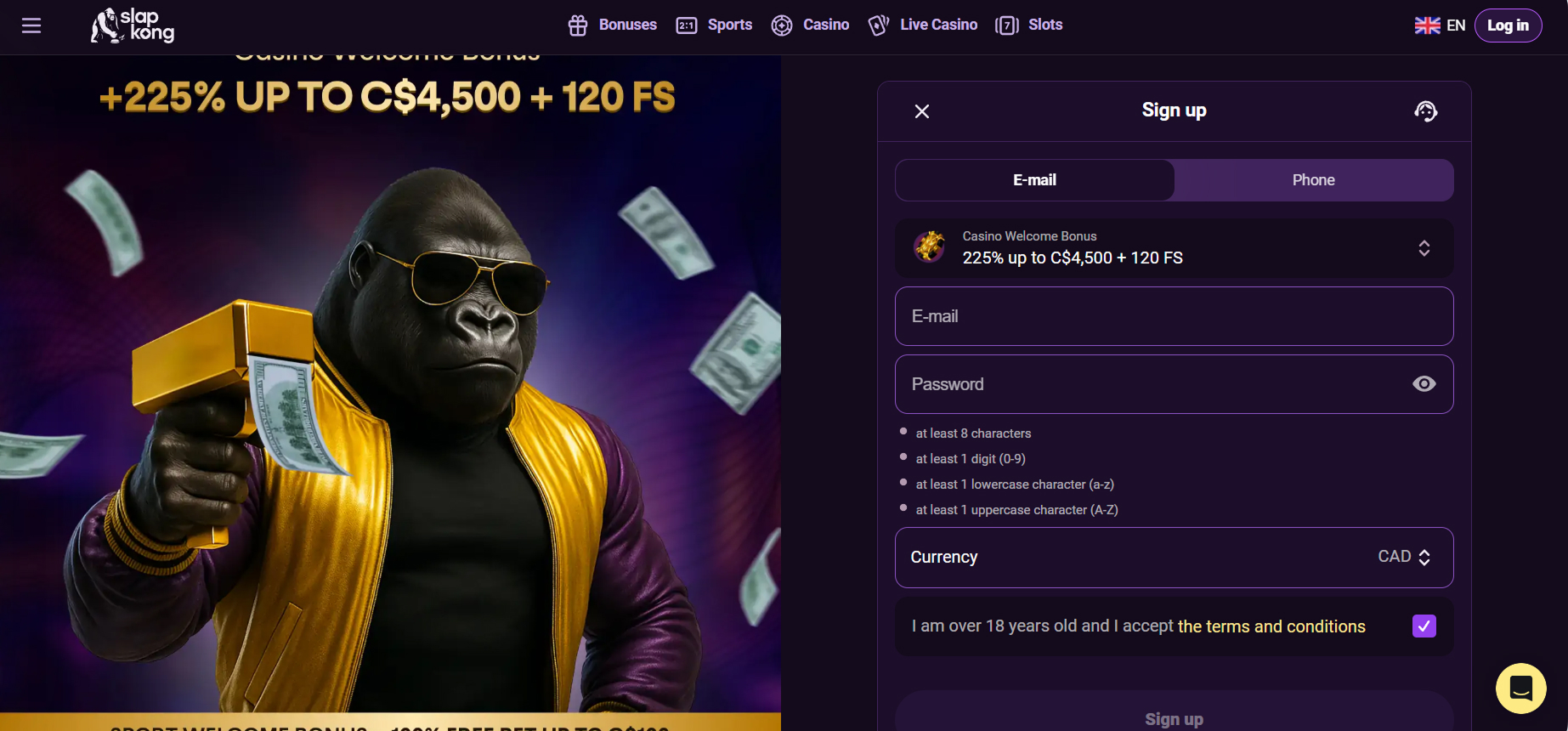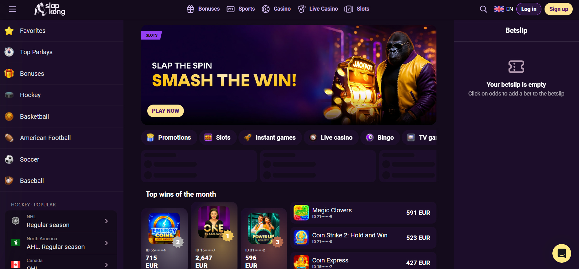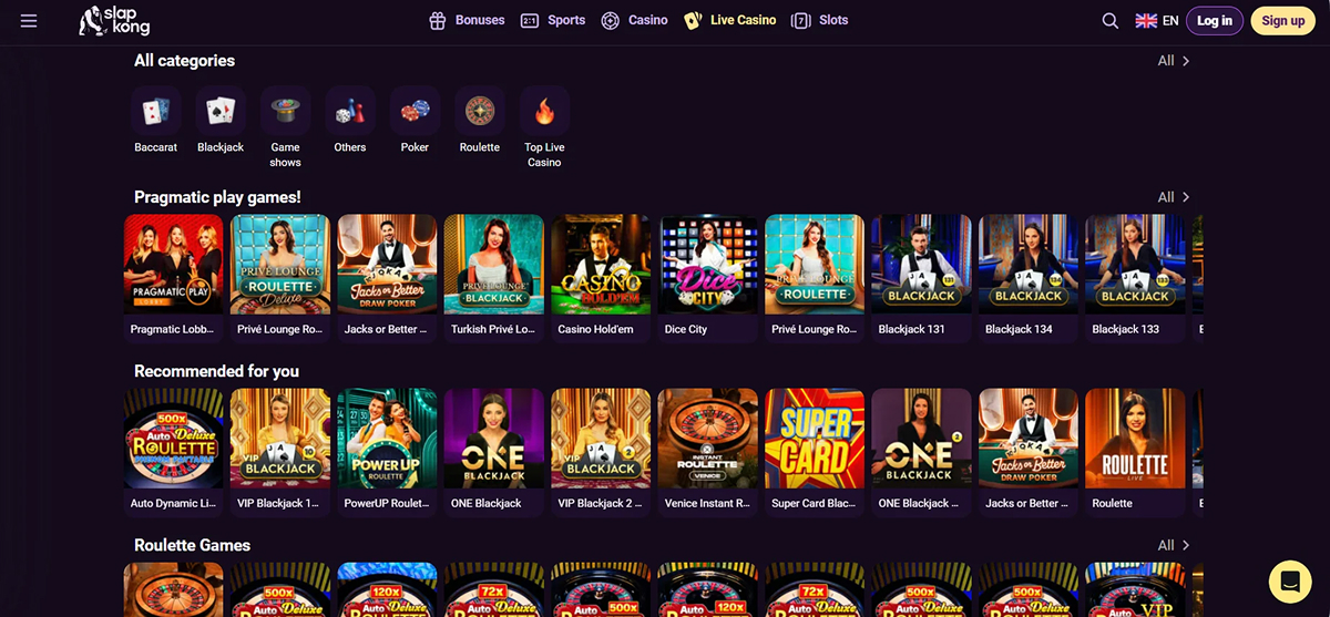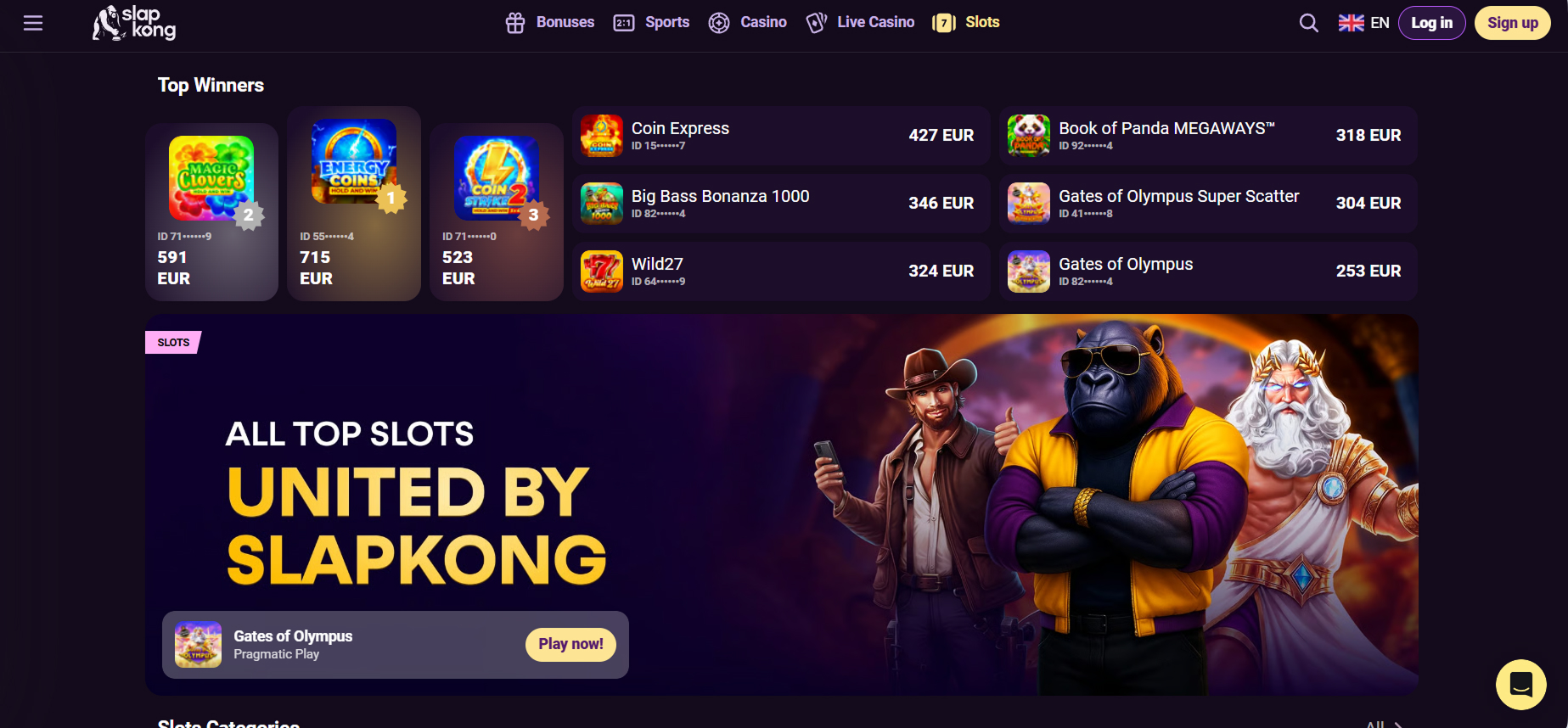 SlapKong Casino is an online casino that stands out with a vast game library, modern banking options, and a global reach. With more than 4,000 slot games—alongside table games, live dealer games, and specialty formats—it caters to a wide variety of player tastes. The platform supports multiple payment methods, including credit/debit cards, e-wallets, and cryptocurrencies.