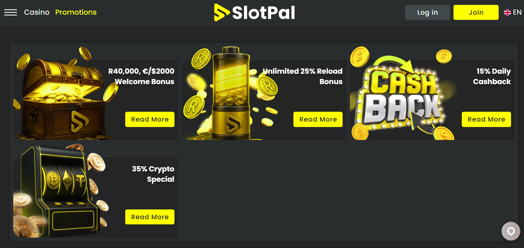 SlotPal Casino offers a broad collection of games — from classic slots and video slots to live dealer tables, crash games, and other alternatives — providing players with a wide variety of options depending on their preferences. Their slot library is especially extensive, with both free/demo options and real‑money games, including progressive jackpots and popular themed slots. Additionally, SlotPal supports multiple payment methods, including traditional cards, bank transfers, and cryptocurrencies, making it accessible for players who prefer different currency options.