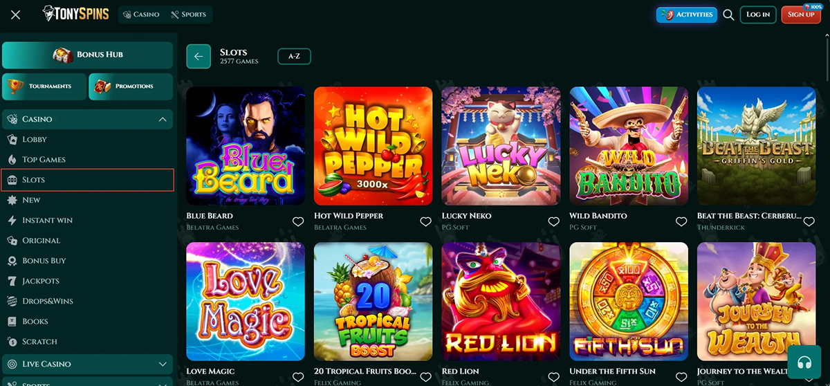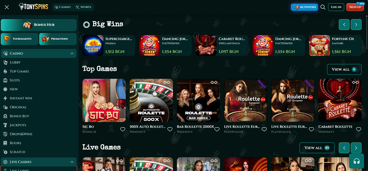 TonySpins Casino launched in 2025 and operates under a licence issued by the authority in Curaçao, providing a regulated framework for its platform. The site offers a vast collection of games, including slots, live‑dealer tables, and scratch‑card offerings. The interface is modern and easy to navigate, with quick registration and a straightforward verification process, helping players get started without delays.
