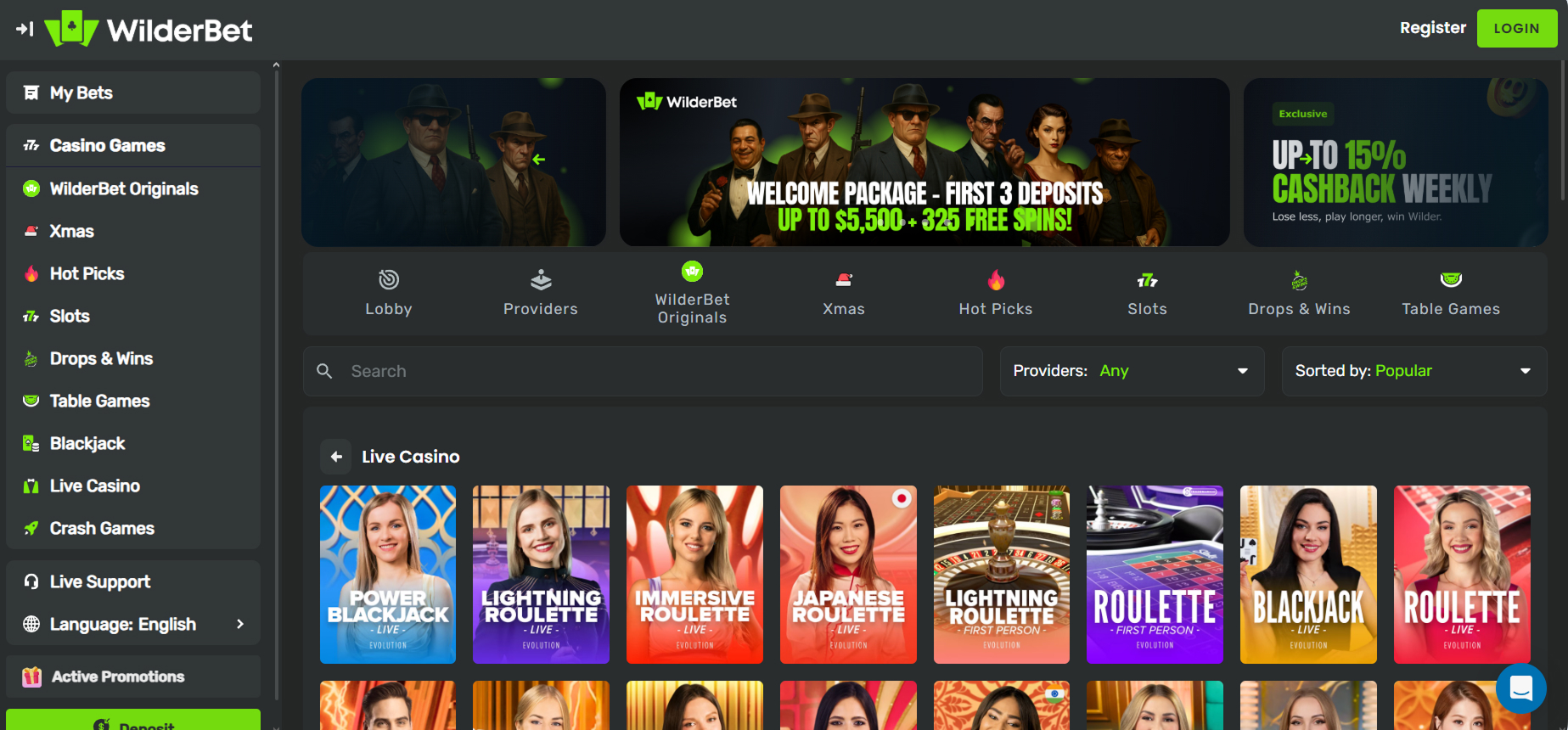 Live casino Live casino Real-time casino games streamed from professional studios or land-based venues. Includes table games with live dealers, offering an authentic and interactive gaming experience.