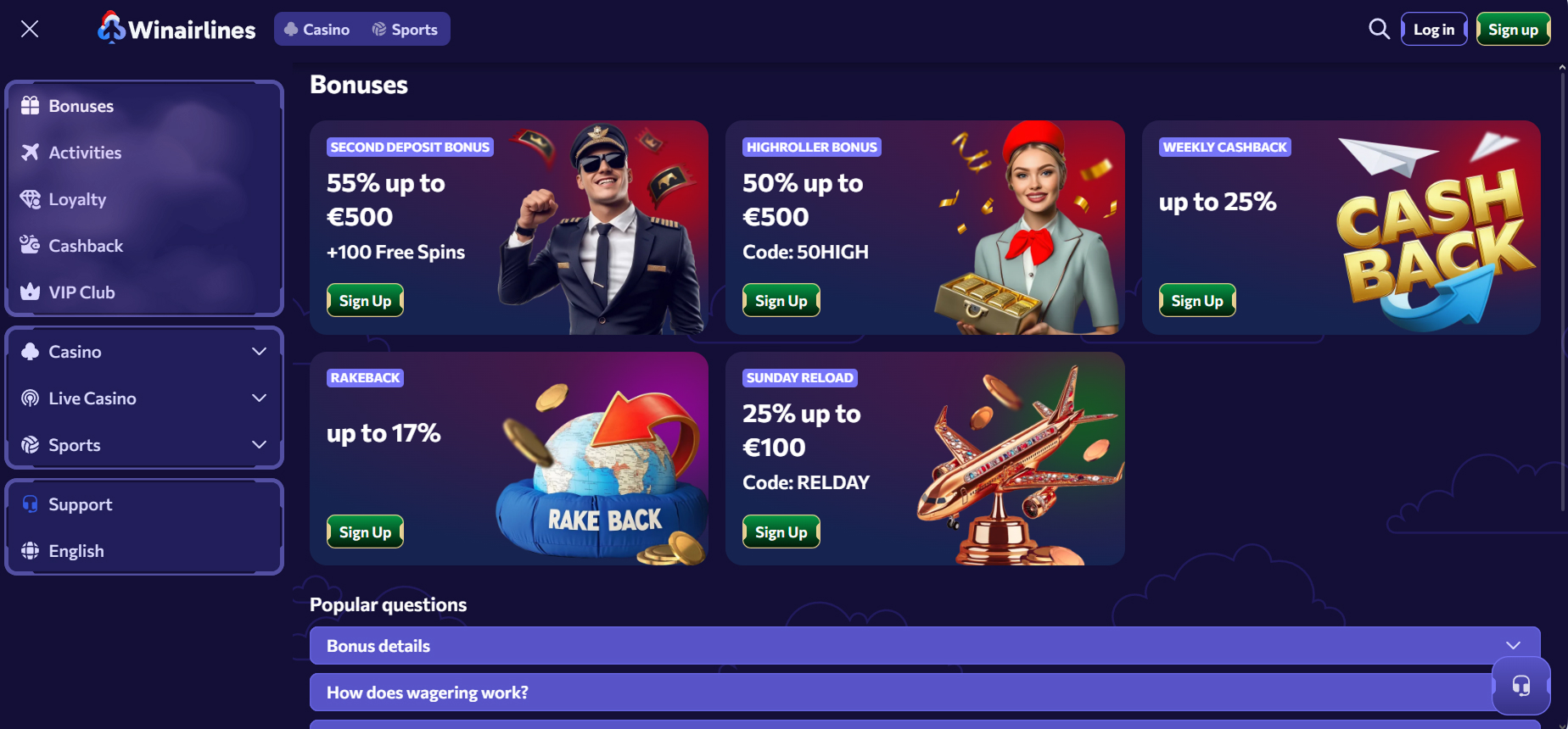 In addition to a vast game library, WinAirlines Casino offers enticing promotions and bonuses that keep gameplay exciting and rewarding. Frequent tournaments, loyalty programs, and special seasonal events give players multiple ways to maximize their winnings and stay engaged. The casino also provides responsive customer support, available 24/7, ensuring that any questions or concerns are addressed promptly. With a combination of variety, convenience, and reward-driven gameplay, WinAirlines Casino aims to make every visit engaging and memorable.