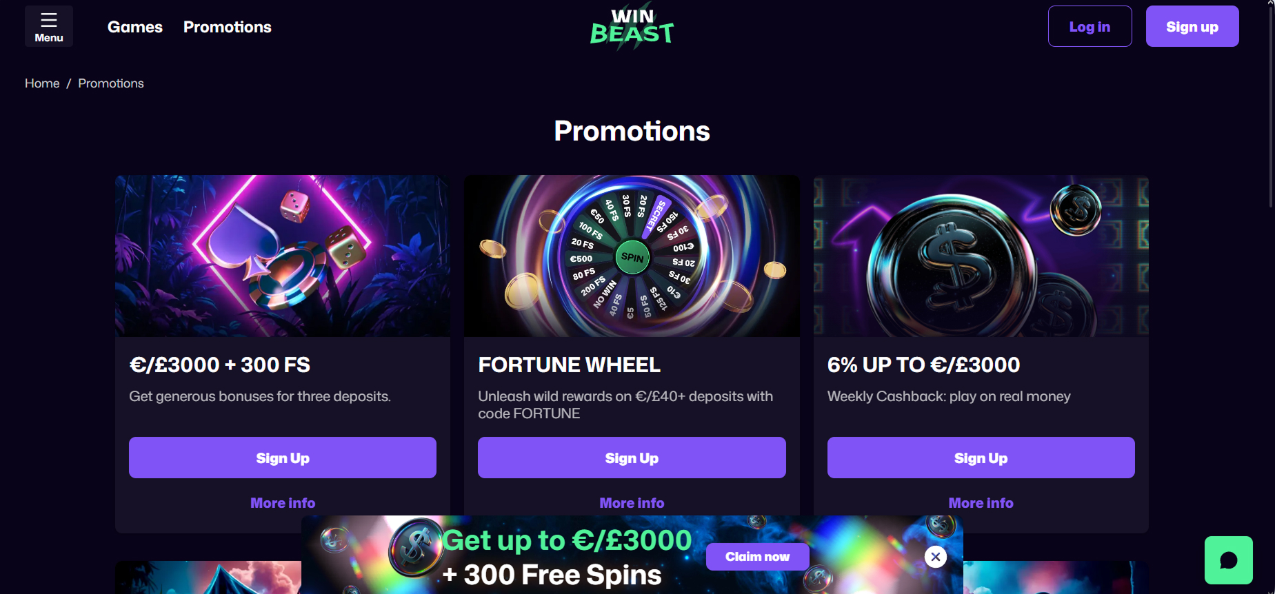 WinBeast Casino offers a variety of promotions designed to keep players engaged and rewarded. New players can take advantage of a generous welcome bonus that includes deposit matches and free spins. Regular players benefit from ongoing weekly bonuses, cashback offers, and reload incentives. Additionally, the casino frequently runs special tournaments and prize draws, giving members the chance to compete for extra rewards and jackpots. VIP and loyalty programs provide further perks, including exclusive bonuses, higher withdrawal limits, and personalized rewards, making every visit potentially more rewarding.