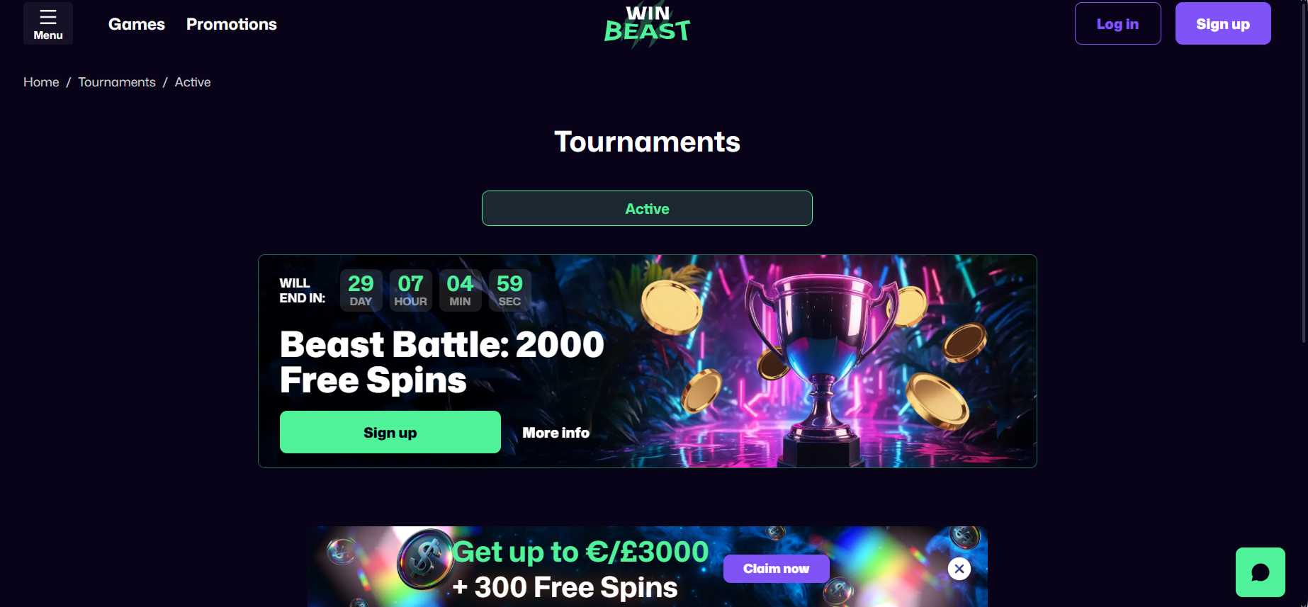 New players at WinBeast Casino can claim a three-part welcome package of up to €/£ 3,000 plus 300 free spins spread across their first three deposits. On the first deposit, the bonus is 100 % (up to €/£ 1,000) plus 100 free spins; the second deposit offers 50 % (up to €/£ 1,000) plus 100 free spins; and the third deposit gives another 100 % (up to €/£ 1,000) plus 100 free spins.