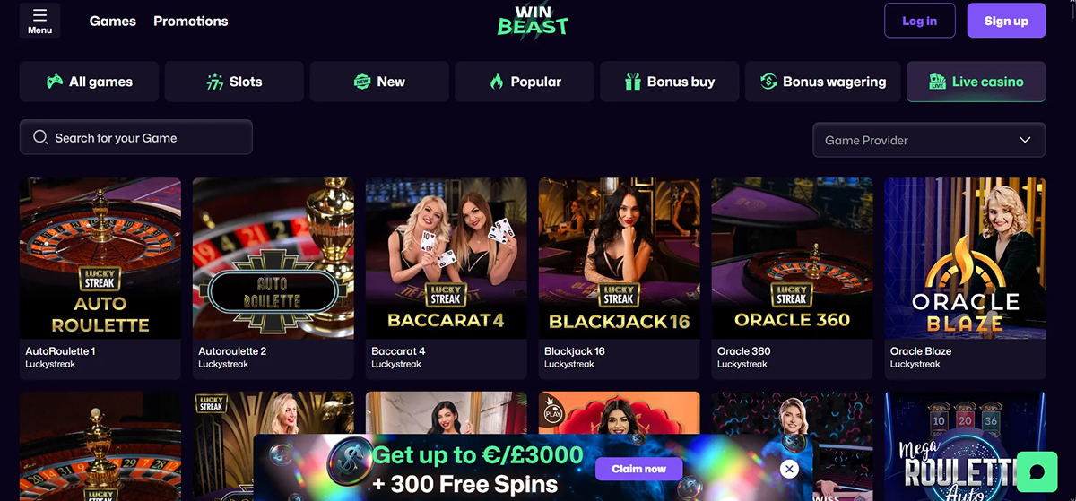 Slots are the highlight at WinBeast Casino, boasting an extensive collection of titles that blend engaging gameplay with high-quality design. Each slot comes with its own volatility and RTP, allowing players to select games that align with their preferred style and strategy. Innovative features such as Megaways, cascading reels, and bonus-buy options add extra excitement and increase the potential for significant wins. Despite the wide variety of themes and mechanics, the interface remains intuitive and easy to navigate. Players can also use filters for provider, theme, or volatility to quickly find games that match their interests and risk preferences.