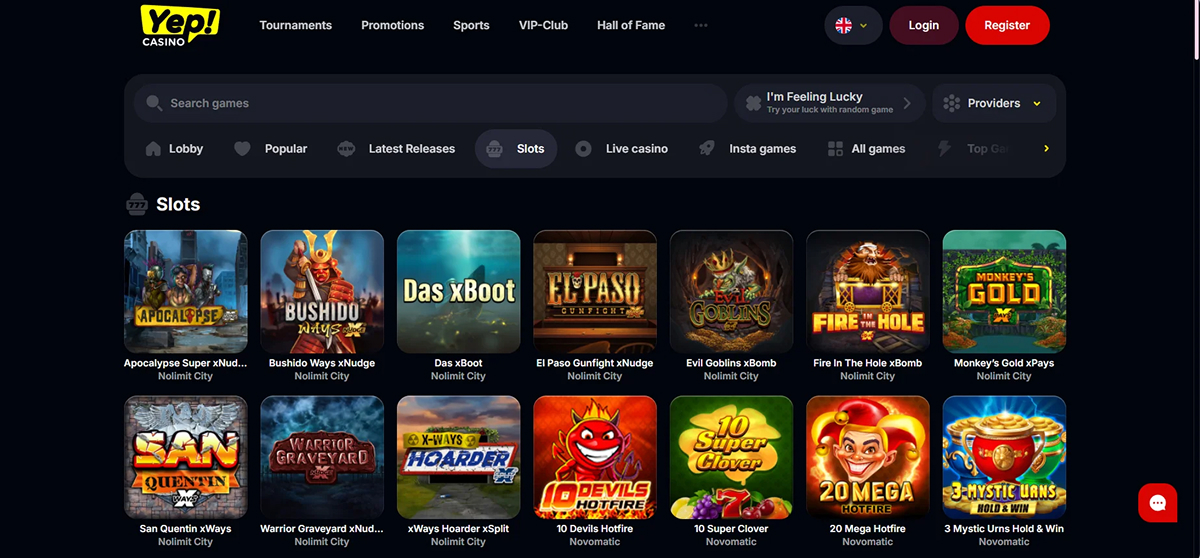 Yep Casino is a dynamic online gaming destination designed for players who enjoy excitement, variety, and smooth gameplay all in one place. The platform brings together a wide selection of slots, table games, and live dealer options from well-known providers, ensuring high quality visuals, engaging mechanics, and fair play. With an intuitive interface and fast loading performance, players can easily find their favorite titles or discover new ones, whether they are playing on desktop or mobile. Yep Casino also places strong emphasis on security, using advanced encryption and trusted payment methods to keep player data and transactions protected at all times.
