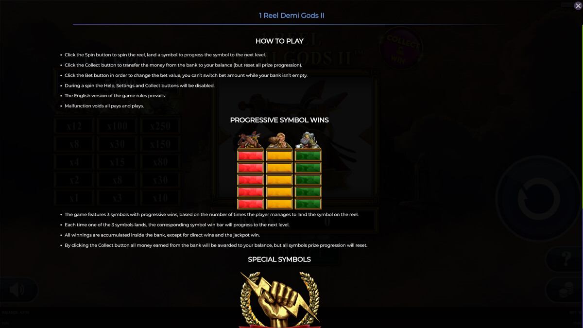1 Reel Demi Gods II functions as a direct sequel within the one reel Demi Gods branch, succeeding the original entry while adopting a new thematic angle centered on Greek myth and Zeus imagery. The mechanical system mirrors the accumulator and reset structure seen across the series, but artwork, symbol distribution, and tuning of the Energy collection differ from later entries. Cross referencing the series shows that each installment maintains the same foundation while introducing incremental thematic and mechanical distinctions, meaning this release is not a reskin but a progressive expansion of the one reel concept.