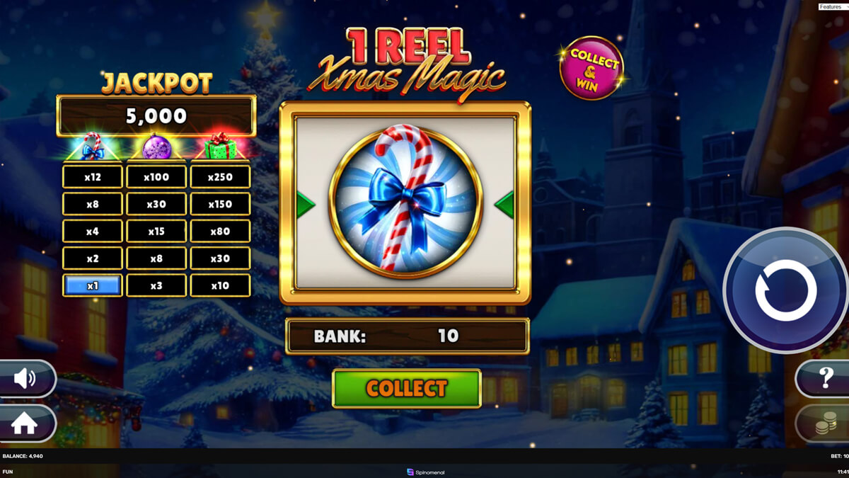 1 Reel Xmas Magic is not part of a predefined Spinomenal series, nor is it a rework of an existing one line collector title. Although the studio has explored Christmas themes in prior releases, none use a strict 3 by 1 format with a pure collector loop as the central engine. The mechanical structure aligns with Spinomenal’s experimental single reel projects, suggesting that this title functions as a standalone concept rather than a clone or continuation.