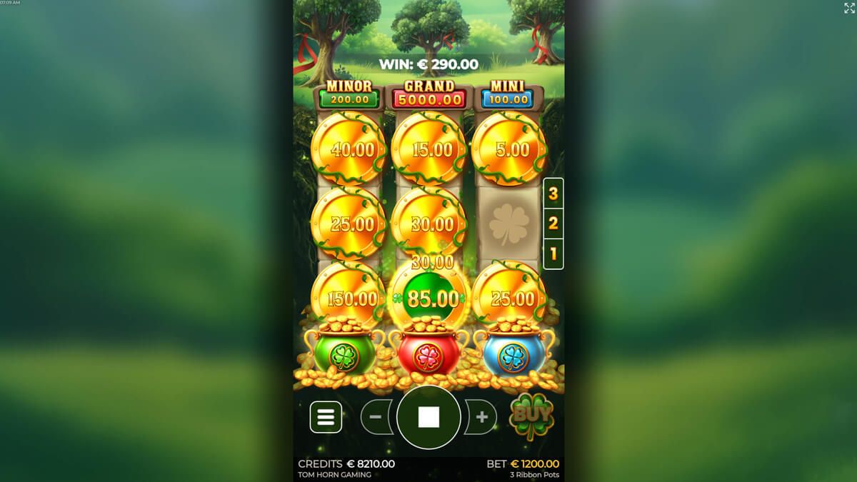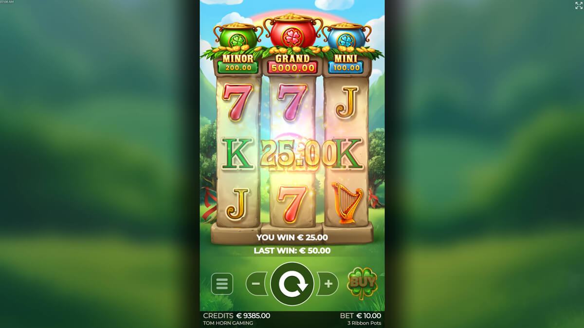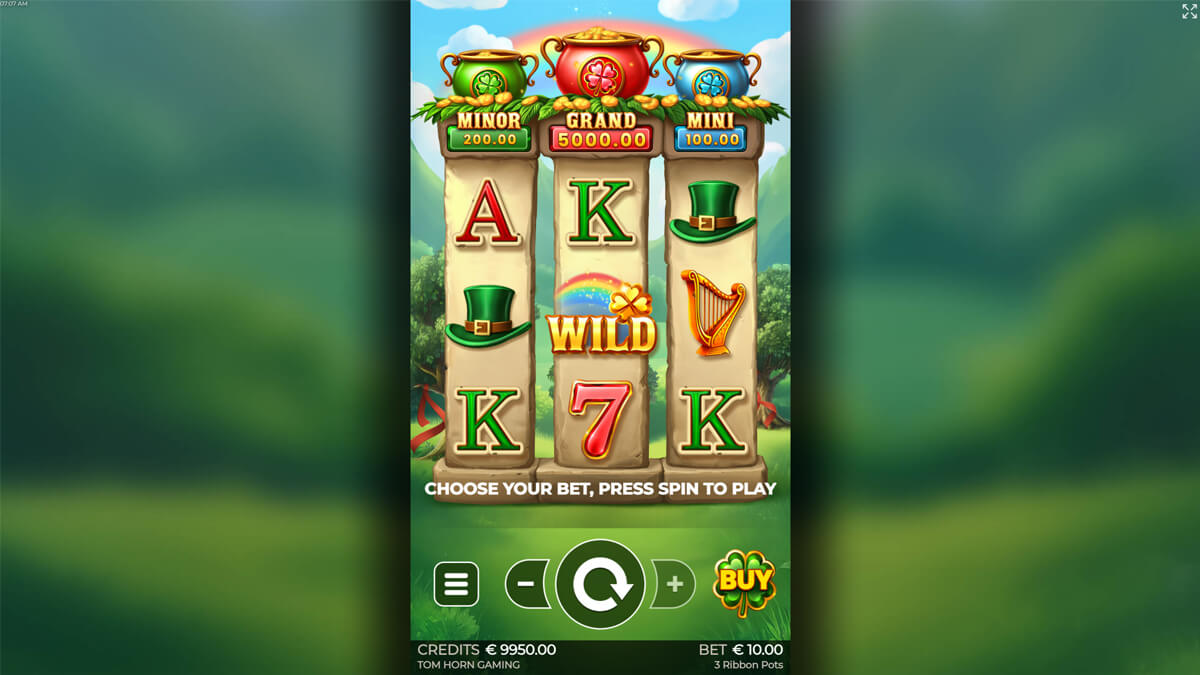 3 Ribbon Pots functions as a classic 3×3 slot with five paylines and a visually cohesive Irish luck theme. The game’s design evokes the golden motif of clovers, harps, and coins intertwined with vivid ribbons, representing a symbolic pursuit of fortune. It operates on a high-volatility framework with an RTP of 95.07%, providing a mathematically lean yet volatile experience. The maximum exposure of 15,985× per spin indicates substantial payout potential, suggesting the model relies on feature-driven events rather than steady incremental wins to achieve its expected return.