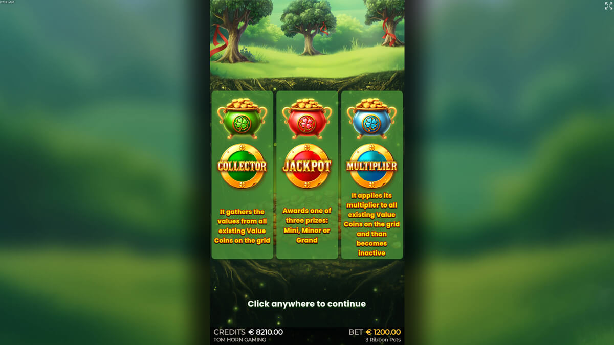 3 Ribbon Pots appears to be a standalone creation rather than a continuation or modification of an existing Tom Horn slot. While it borrows structural inspiration from prior Hold and Win frameworks like 243 Crystal Fruits Reversed and Flaming Fruit Jackpot, its specific integration of three ribbon-themed pot mechanics and triple-tier jackpot collection system indicates unique design implementation. The game does not directly replicate any previous Tom Horn release, instead offering a condensed mathematical expression of their jackpot philosophy within a minimalist grid.