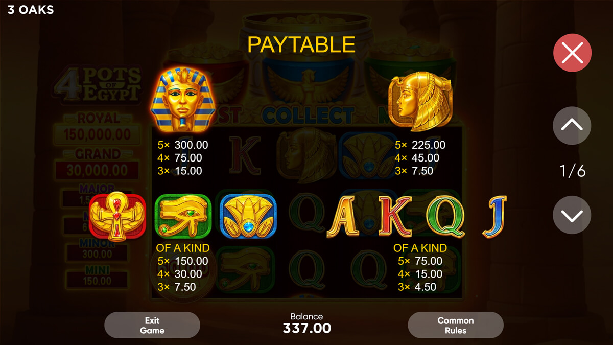 4 Pots of Egypt Slot Pay Symbols & Their Values