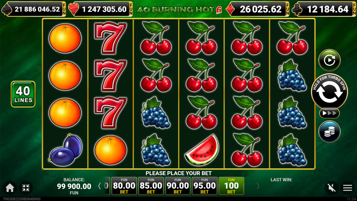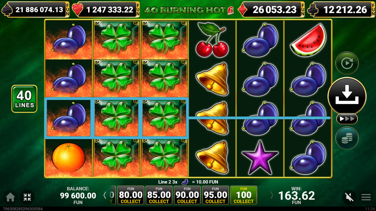 40 Burning Hot 6 Reels Slot Pay Symbols & Their Values
