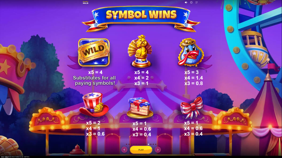 Big Rich Turkeys Slot Pay Symbols & Their Values