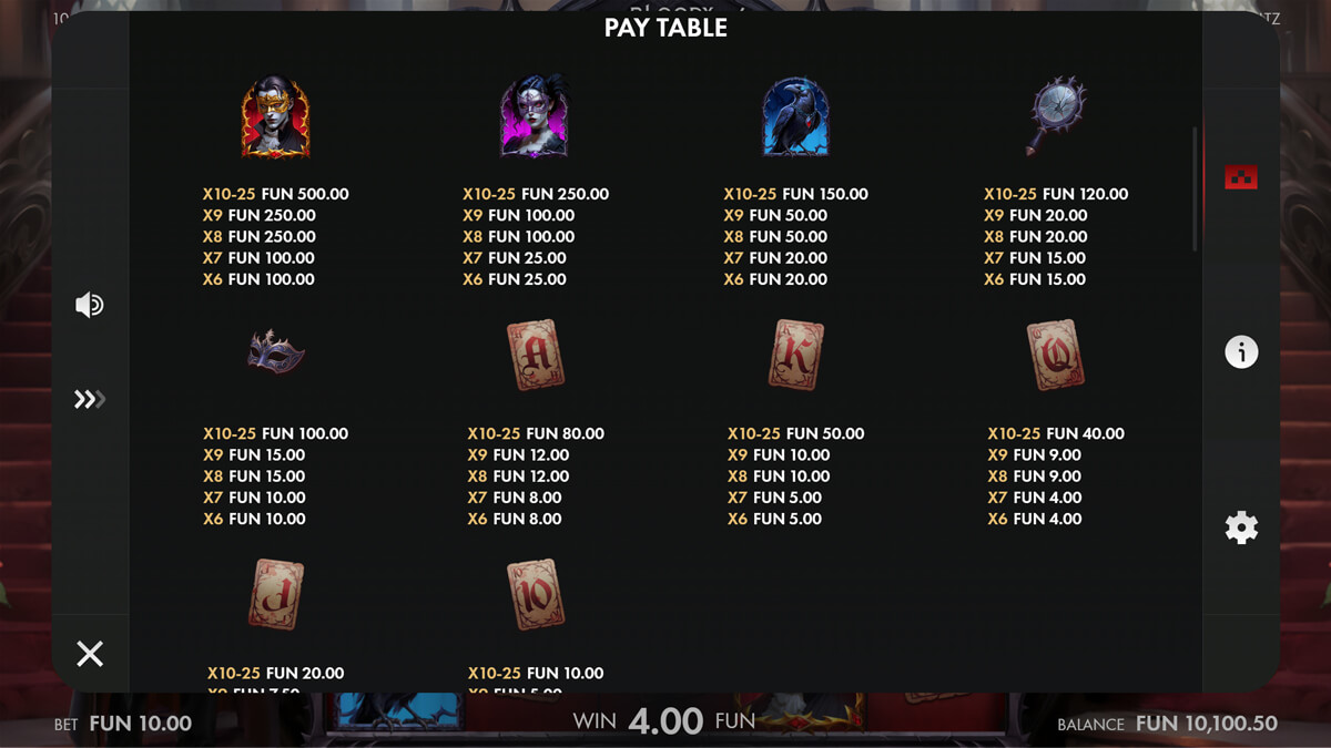 Bloody Waltz Slot Pay Symbols & Their Values