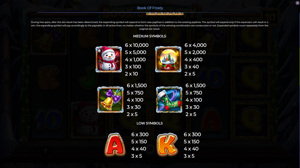 Book of Frosty Slot Pay Symbols & Their Values