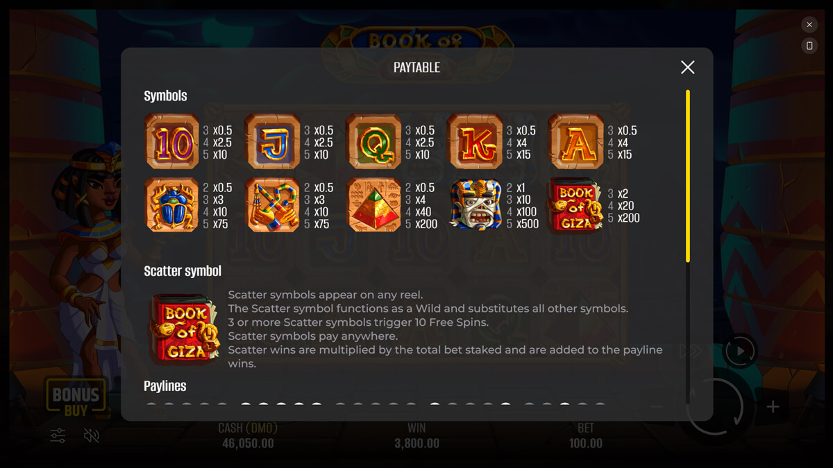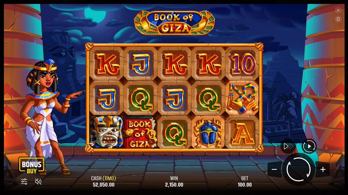 Book of Giza is not part of an established branded series but clearly operates within the broader Book style category. While it shares structural similarities with classic Book themed slots, its multiplier layering and buy feature positioning differentiate it from direct clones. The title functions as a modernized interpretation rather than a reskin, maintaining genre familiarity while adjusting volatility levers and payout ceilings.