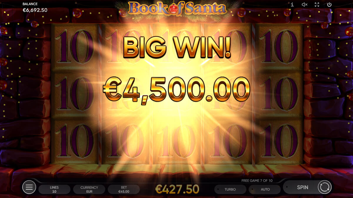 Endorphina frequently applies restrained volatility models in its Book themed slots, favoring mathematical consistency over spectacle. Book of Santa follows this approach closely, prioritizing controlled RTP delivery and predictable bonus behavior. The studio’s tendency to avoid extreme maximum win claims is evident, reinforcing a design philosophy centered on balance rather than peak chasing.