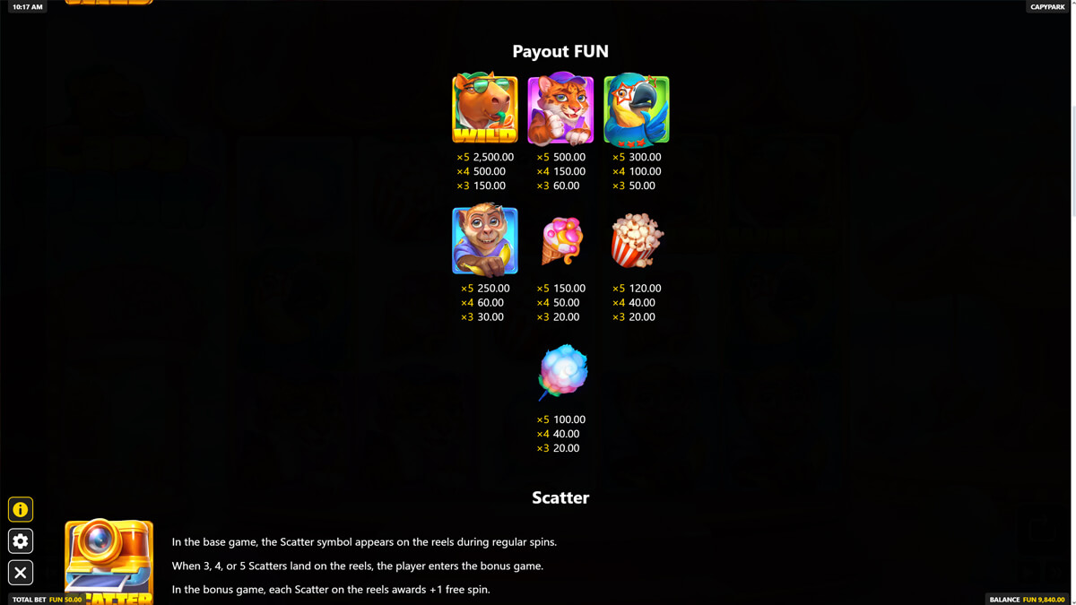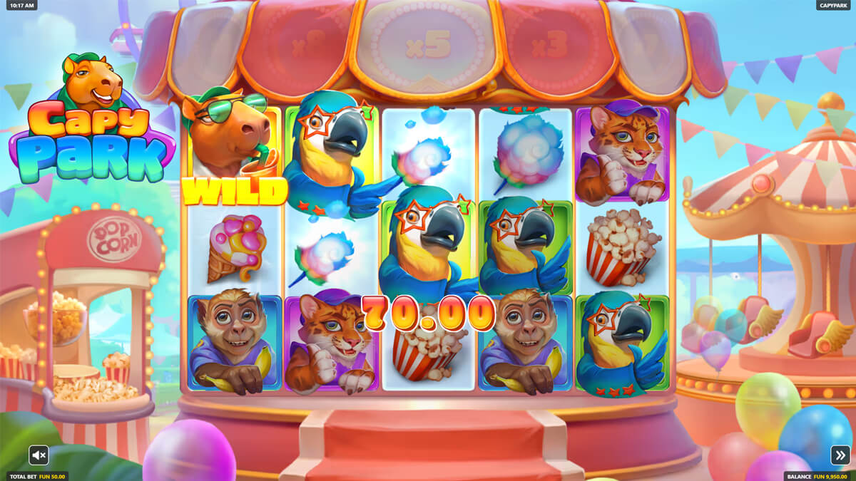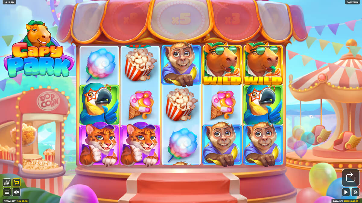 CapyPark is a standalone title rather than a direct sequel or reskin. While amusement park themes and fortune wheel mechanics are not novel in isolation, the integration of paying wilds and continuous wheel activation during free spins differentiates it from standard carnival style slots. Its structure suggests an original composition rather than a mechanical clone.