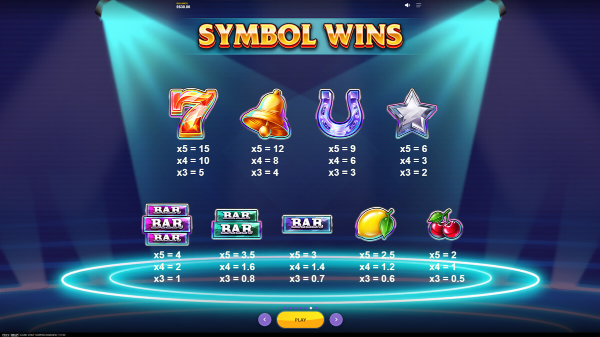Cash Volt Supercharged Slot Pay Symbols & Their Values