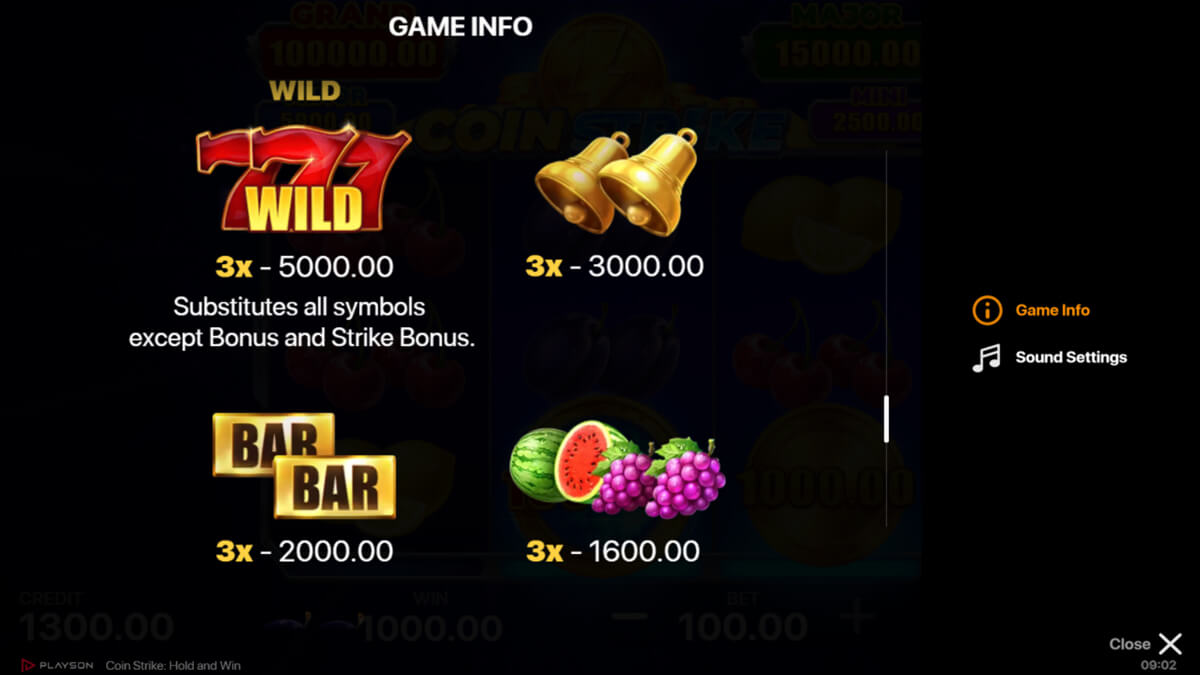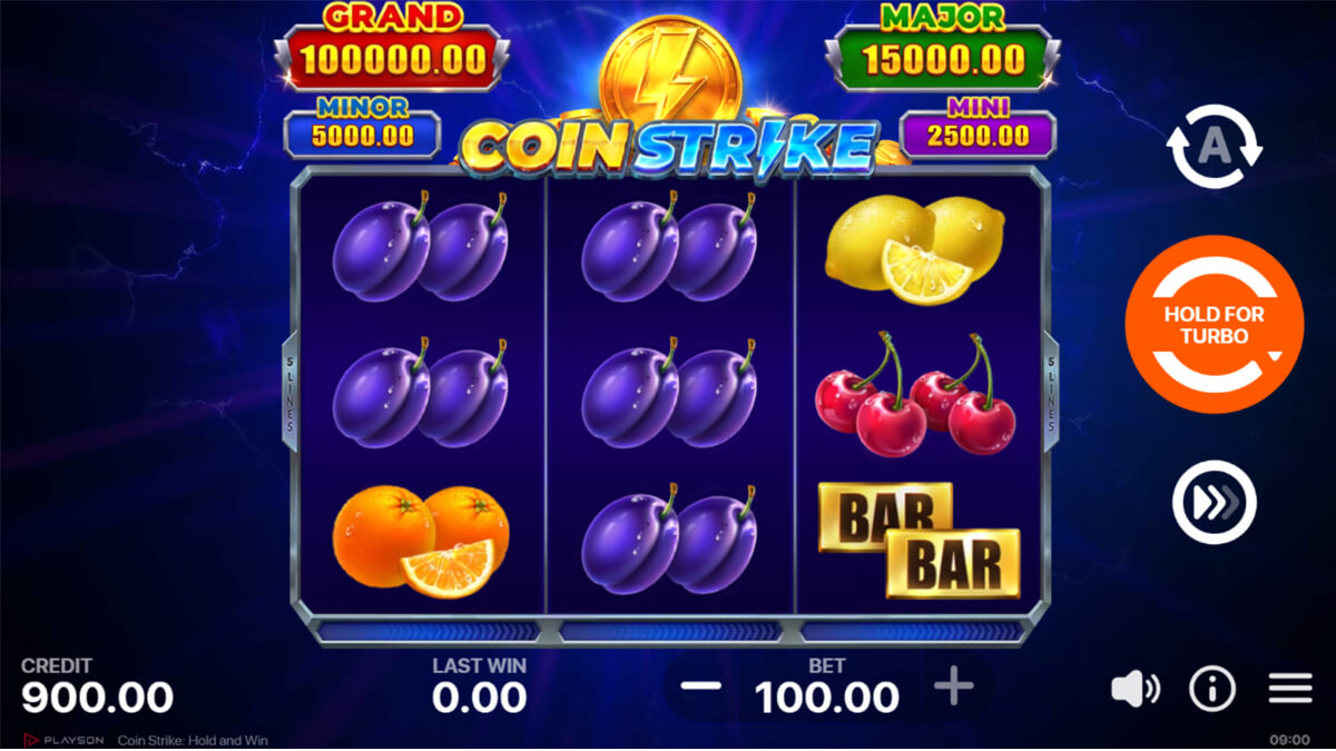 Coin Strike: Hold and Win fits within Playson's established Hold and Win catalog but is not a reskin of any specific earlier title. It uses the same mechanical foundation found in previous releases but implements a more compact 3×3 structure and a dual coin system to differentiate itself. The coin strike mechanic, which auto collects visible values outside respins, provides a distinct identity that is not present in earlier fruit themed Playson Hold and Win titles. While it follows the general lineage of the series, its symbol mix, coin behavior, and pacing show that it is a standalone variant rather than a direct clone or graphical lift of another instalment.