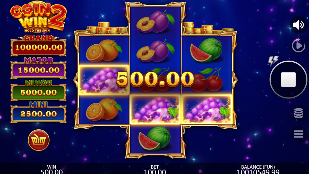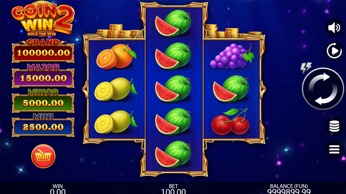 The mathematical structure of Coin Win 2: Hold the Spin centers on controlled volatility with a clear emphasis on feature reliance. Medium volatility ensures steady base returns, while the Hold the Spin grid acts as a high leverage state where aggregation effects dominate. The RTP range reflects operability within different regulatory setups, but at its highest configuration, the model achieves a balanced distribution between low value repetition and periodic large accumulations. The broad bet range allows consistent volatility behavior at all stakes and links well with the classic theme by providing predictable pacing and measured risk.
