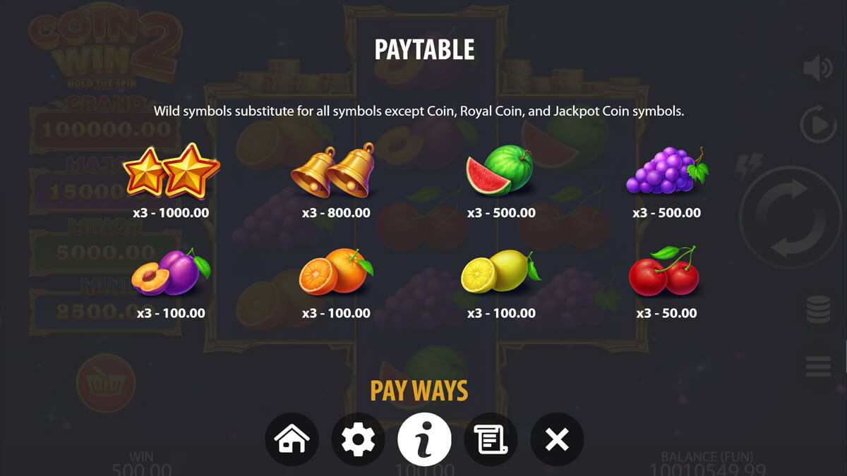 Coin Win 2: Hold the Spin Slot Pay Symbols & Their Values