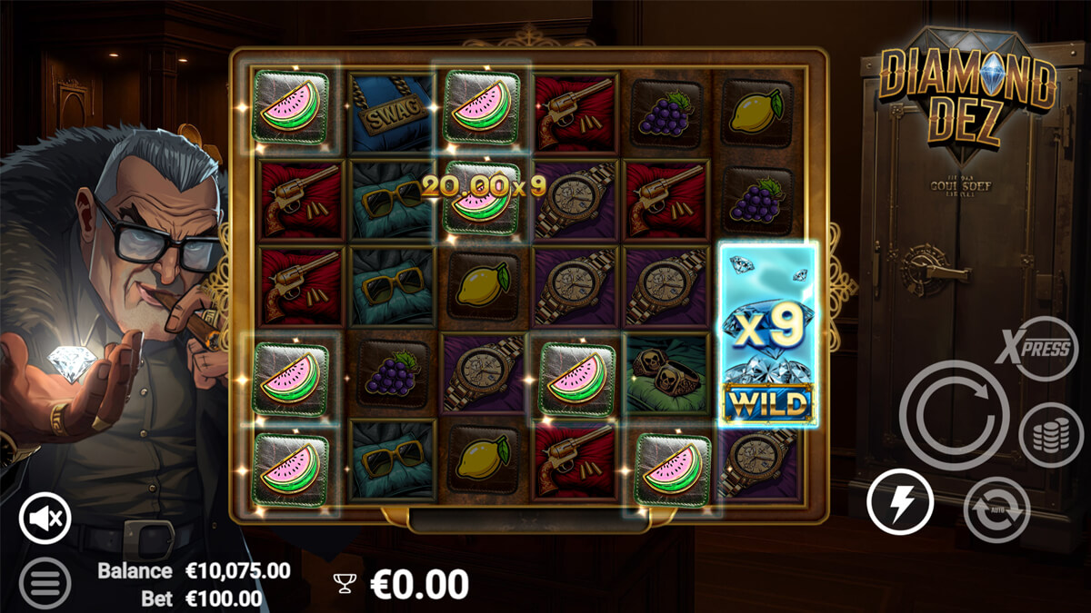 Diamond Dez does not appear to be a sequel or rework of an existing AvatarUX title. While it incorporates mechanics typical of the studio, such as avalanche reactions and symbol expansion, its Pay Anywhere structure and gangster gem hybrid theme differ from the more geometric or PopWins focused games the developer is widely known for. Searches show no prior entries featuring this thematic combination or feature arrangement within their catalog. It stands as an independent release that integrates familiar mechanical components into a new structural framework.
