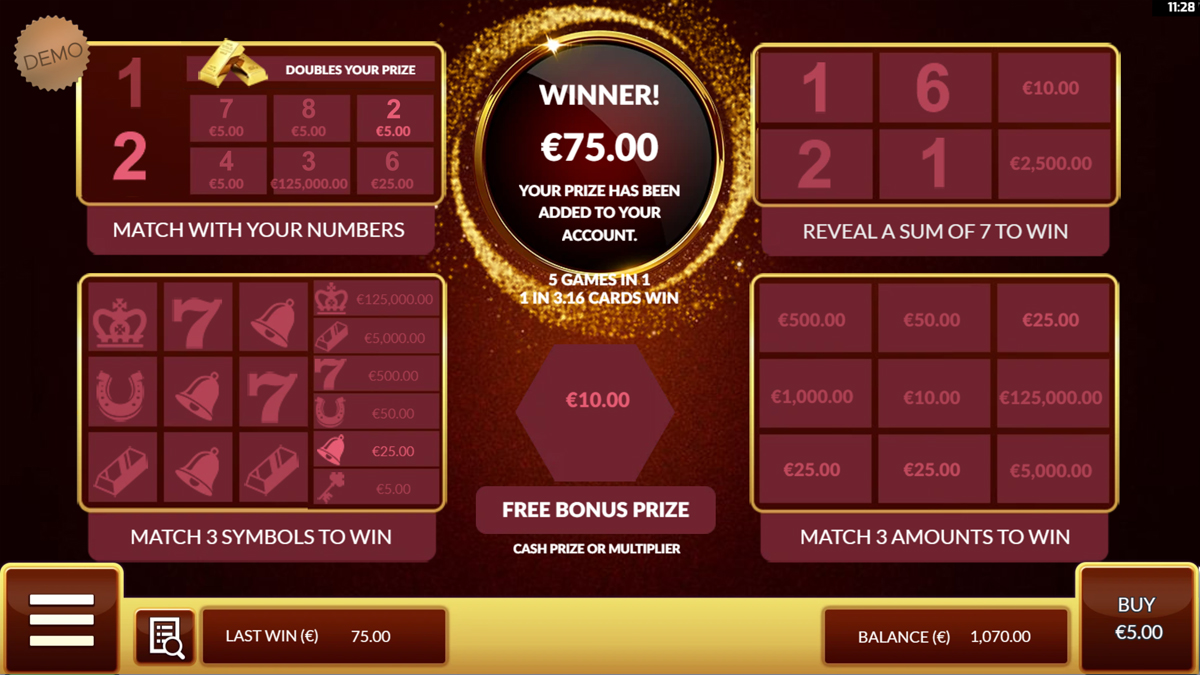 Availability of free play depends on platform configuration, though scratchcard titles are sometimes available in demo mode.