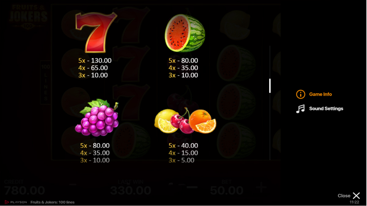 Fruits and Jokers: 40 lines Slot Pay Symbols & Their Values