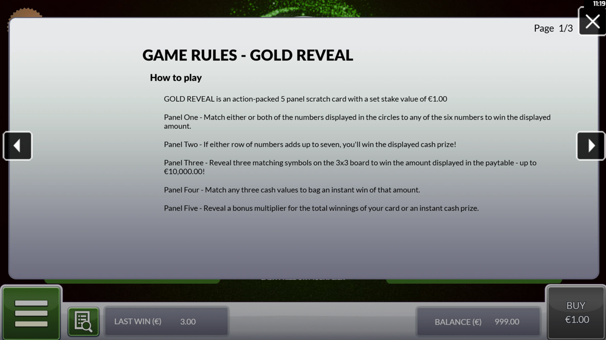 Visually, the title adopts a gold themed aesthetic implied by its name, focusing on metallic tones and premium styling. Gameplay consists of scratching concealed panels to uncover symbol combinations aligned with predefined paylines. There are no spinning reels, cascading mechanics, or expanding features. The entire outcome is determined at the moment of purchase, consistent with scratchcard probability modeling.