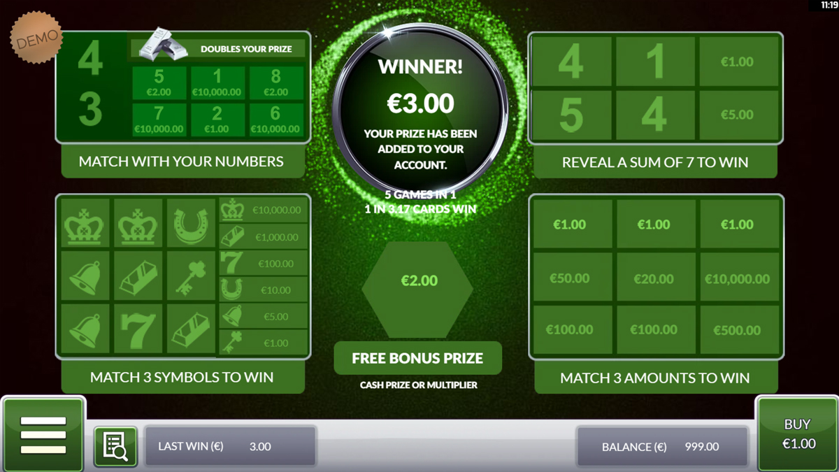 Availability of free play depends on platform configuration, though scratchcard titles are sometimes offered in demo mode.