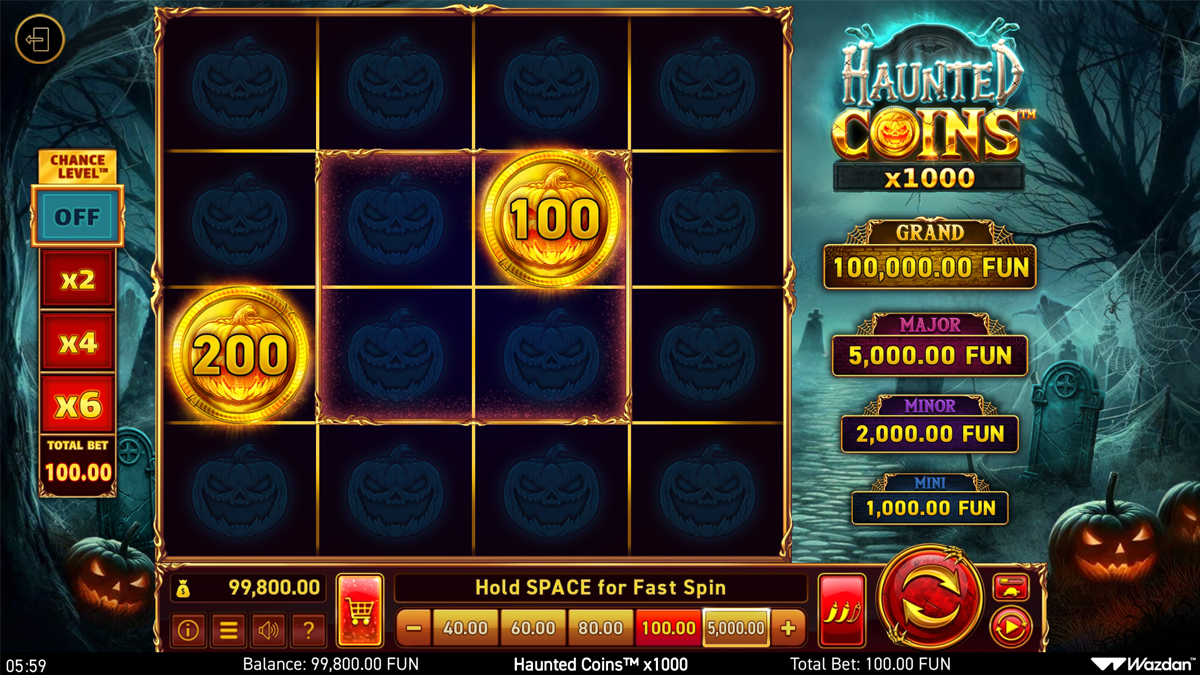 Haunted Coins X1000 is a thematic sequel within Wazdan’s Coins series rather than a mechanical rework or standalone clone. While the underlying Hold and Win structure mirrors previous entries, the Halloween presentation and adjusted payout ceiling differentiate it within the lineup. The slot does not introduce new mechanics but refines pacing and risk through Chance Level integration, positioning it as a focused variation rather than a reinvention.