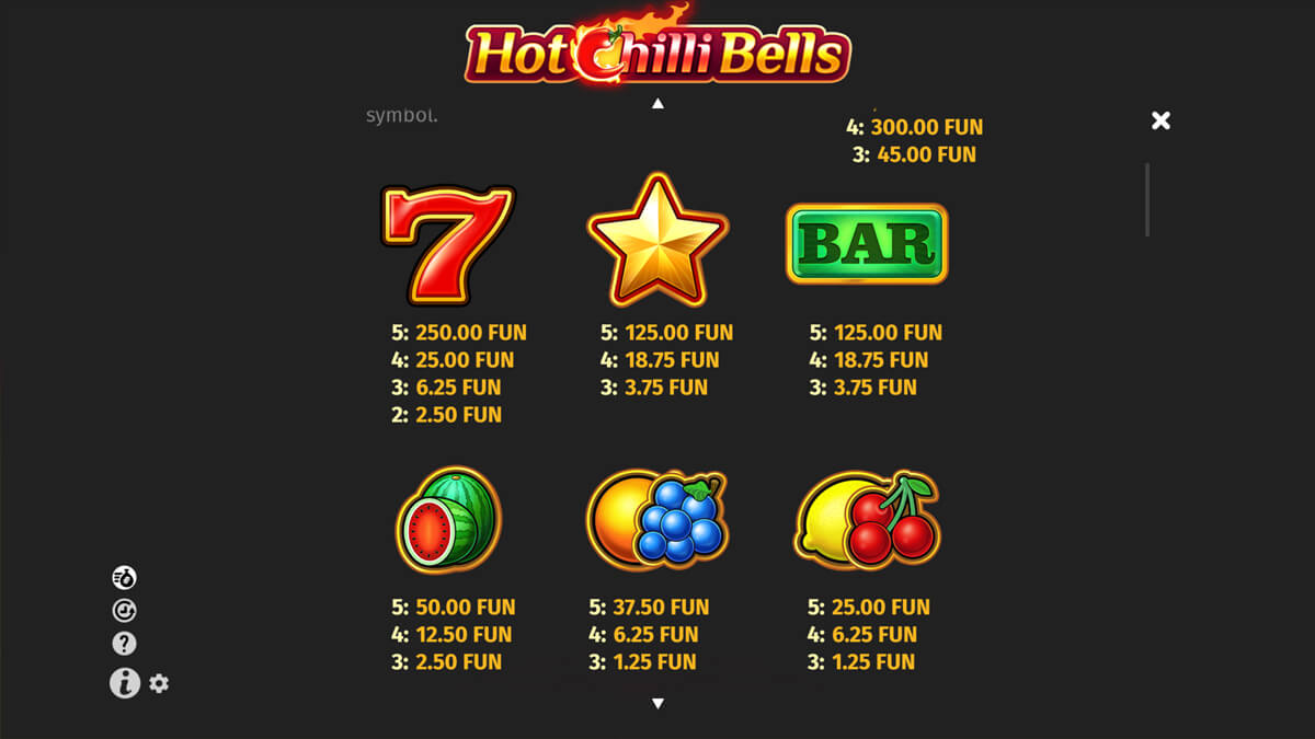 Hot Chilli Bells Slot Pay Symbols & Their Values
