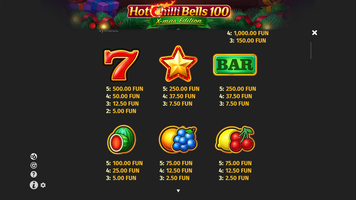 Hot Chilli Bells 100 Slot Pay Symbols & Their Values