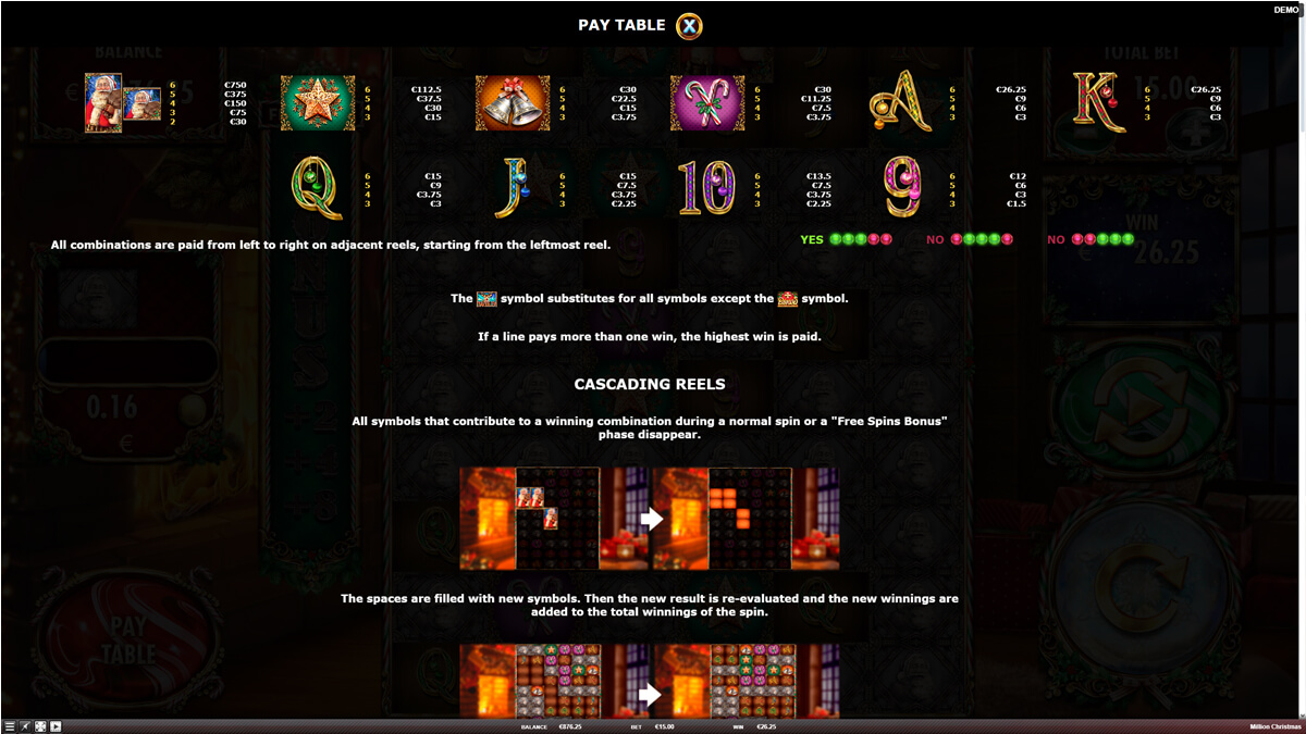 Million Christmas is part of Red Rake’s “Million” series, which includes other grid-based releases featuring expanding reels and cascading structures. While the slot inherits the foundational Million framework, it differentiates itself through its festive thematic recontextualization and integration of the Hold and Win mechanic alongside traditional cascades. It reuses the mathematical infrastructure established in earlier titles such as Million 777 but overlays additional progression systems and seasonal elements. As a result, Million Christmas can be considered a reinterpreted iteration within the same architectural lineage rather than a simple reskin.